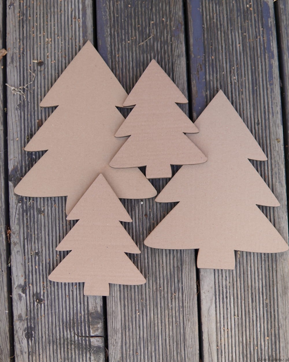 Zestaw 4 choinek: dwie małe (20cm) i dwie duże (29cm).