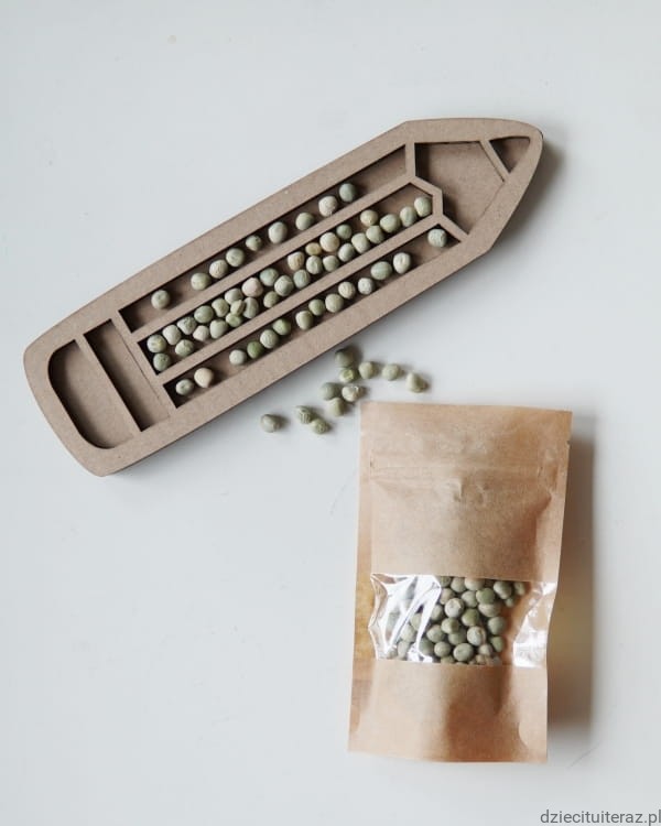 Torebka grochu zielonego do zabaw sensorycznych.