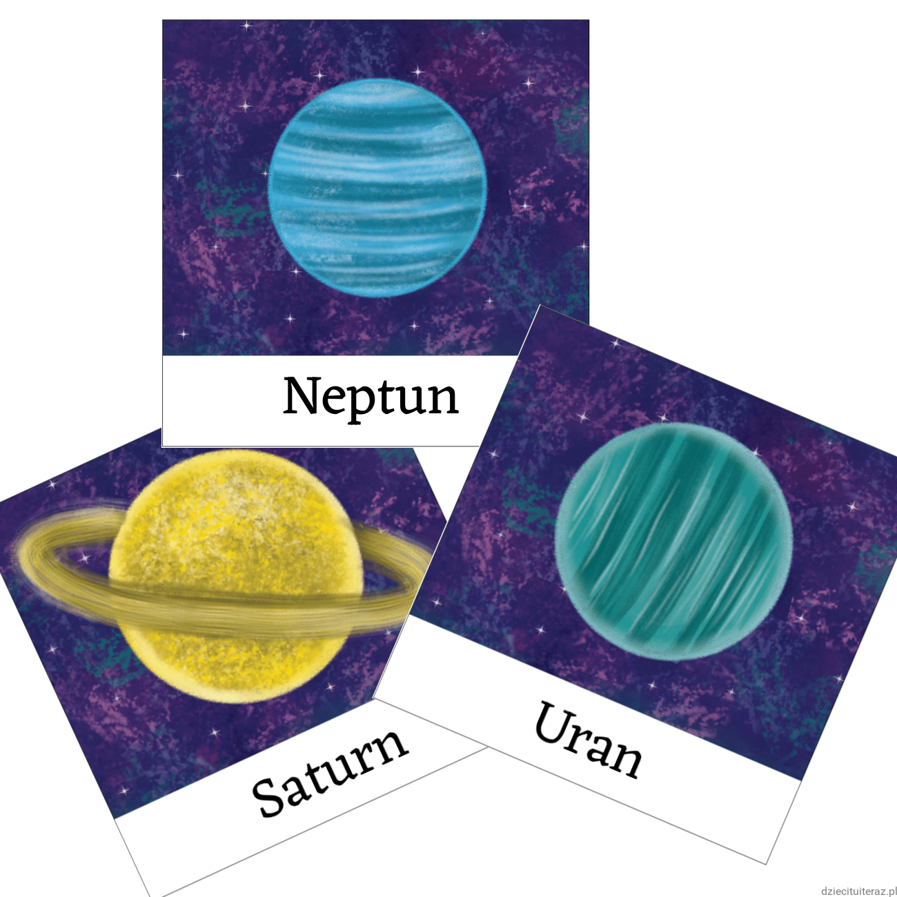 Grafiki planet zostały przygotowane w oparciu o fotografie planet wykonane z wykorzystaniem teleskopów. Zgodnie z ideą Montessori, na kartach próbowaliśmy oddać rzeczywisty wizerunek planet.