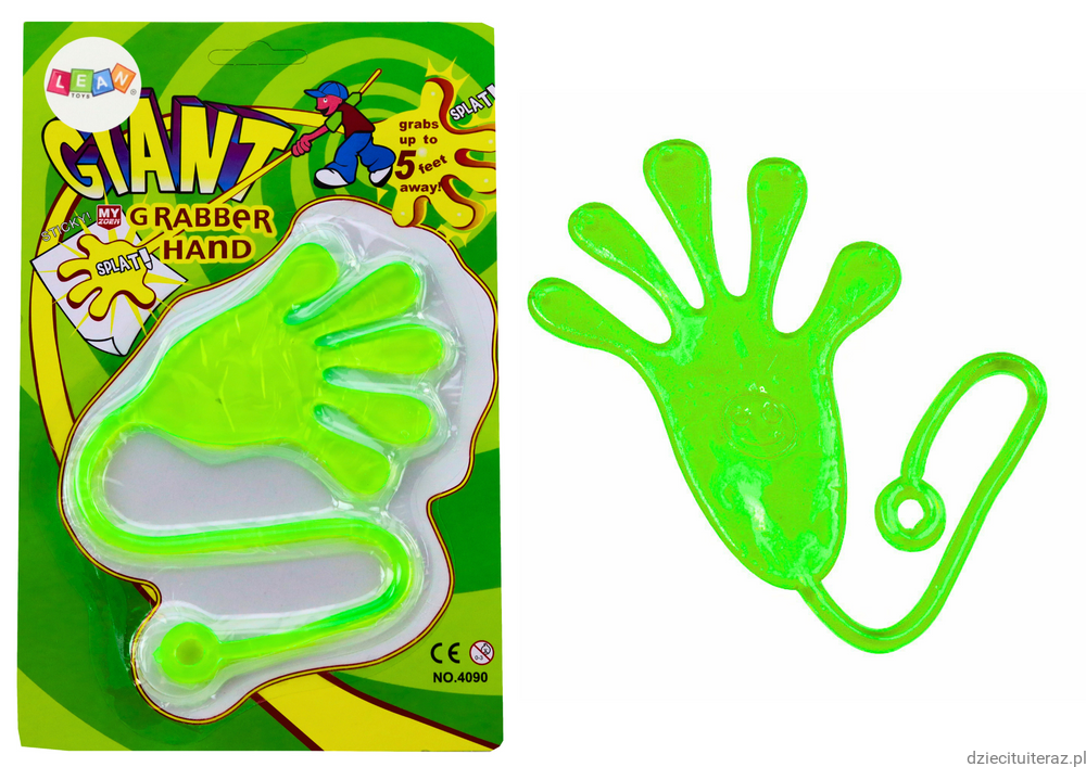 Lepka Rączka w kolorze zielonym to niezwykła zabawka, która z pewnością stanie się hitem wśród dzieci! Jej niepowtarzalny i zabawny wygląd przyciąga uwagę, sprawiając, że każda zabawa staje się jeszcze bardziej fascynująca i pełna radości. Dzieci będą zafascynowane możliwościami, jakie daje ta lepka rączka – można nią rzucać, przyklejać do różnych powierzchni, ściskać, rozciągać, a po chwili znów wraca do swojego pierwotnego kształtu.