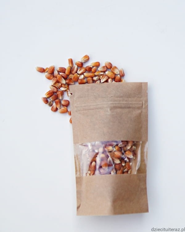 Naturalne ziarna kukurydzy do zabawy sensorycznej.