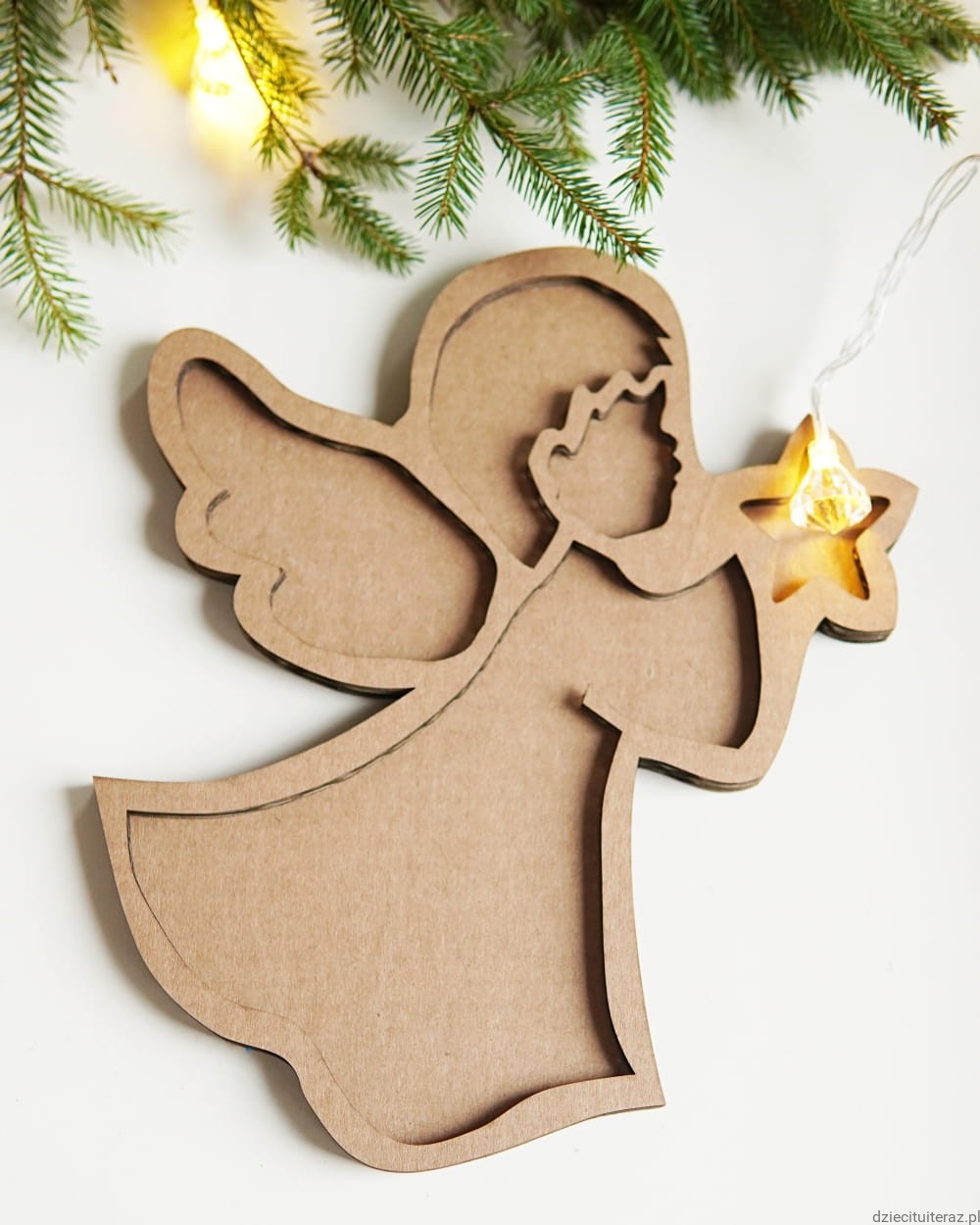 Sensokarton w kształcie aniołka o wymiarach: 25cm x 22cm.