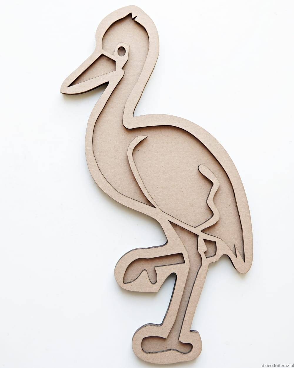 Sensokarton w kształcie bociana o wymiarach: 40cm x 21cm.