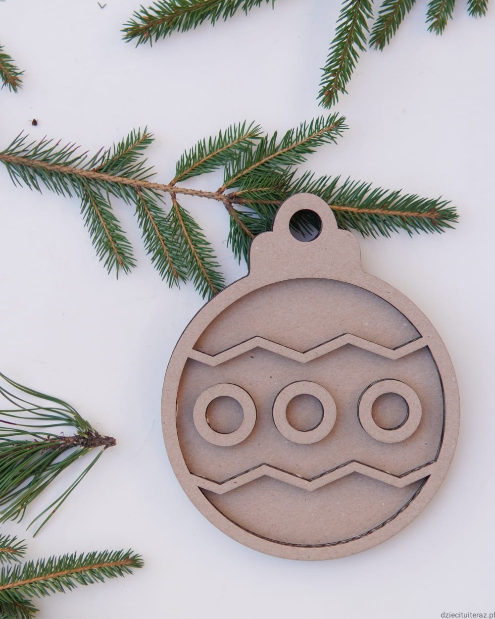 Sensokarton w kształcie bombki o wymiarach: 18cm x 15cm.