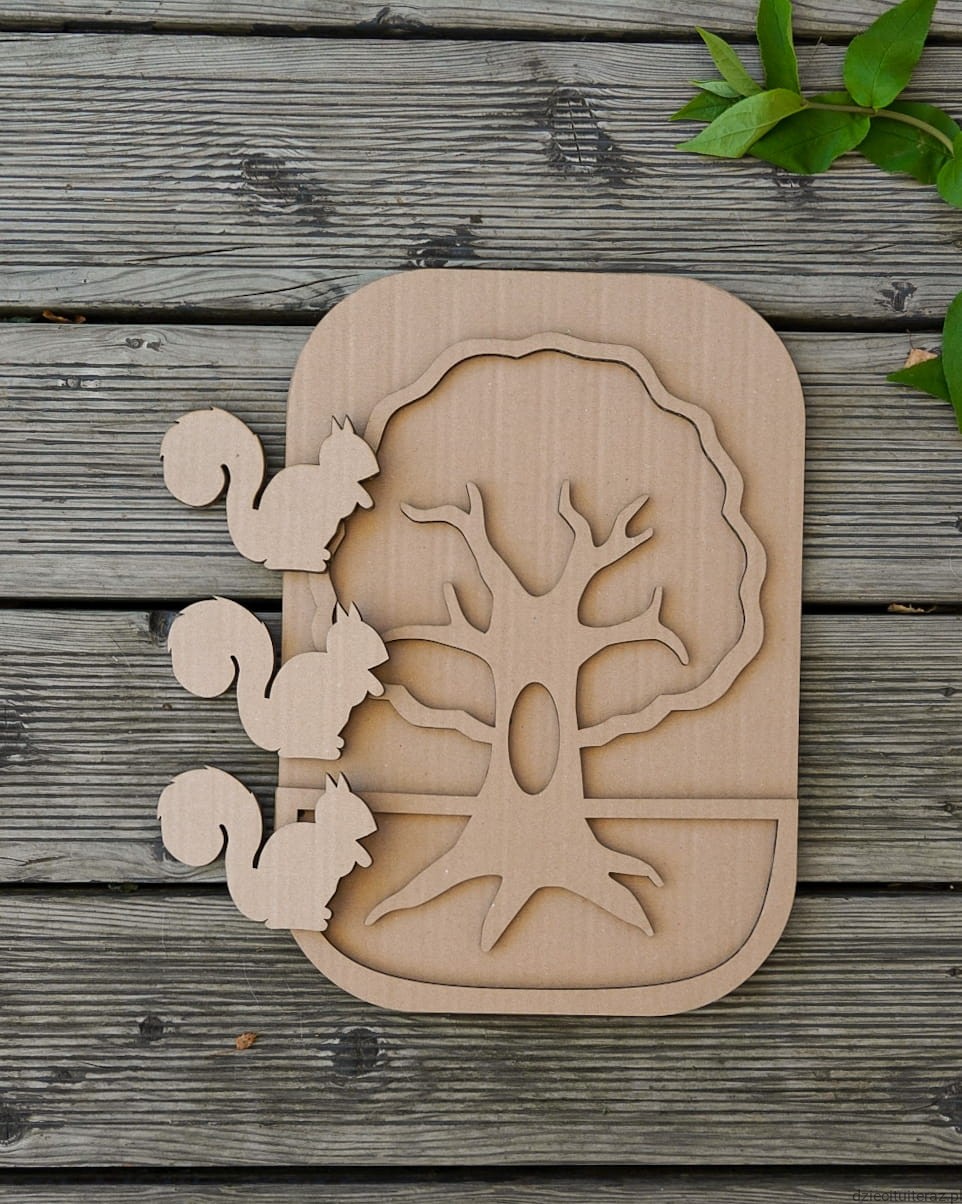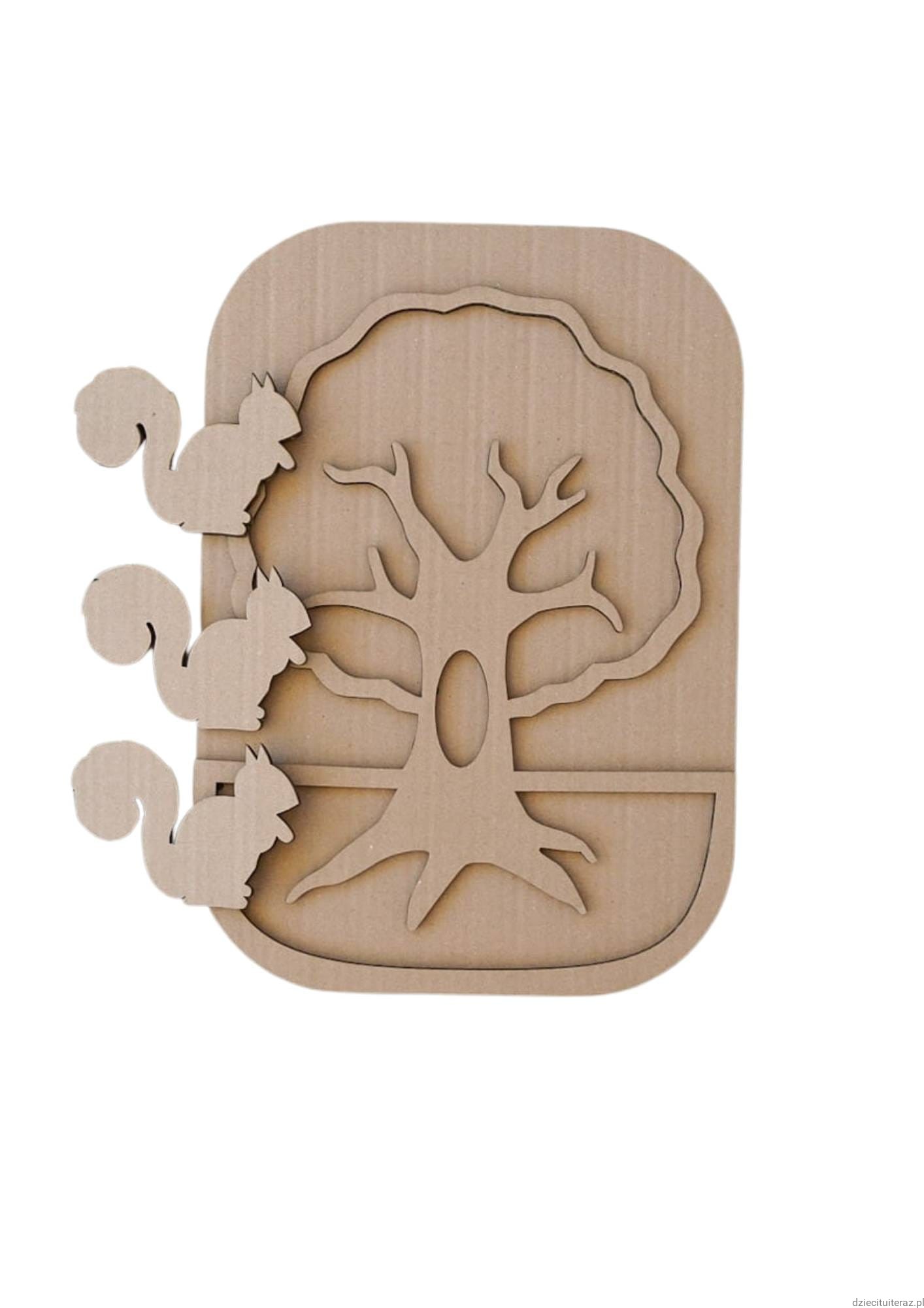 Sensokarton z drzewem w kształcie prostokątnej podkładki na pojemnik trofast.