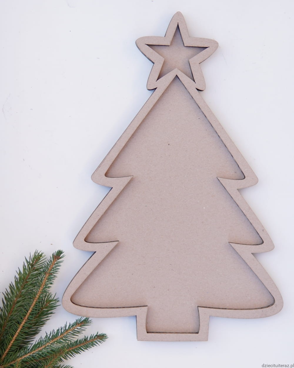 Sensokarton w kształcie choinki o wymiarach 37cm x 25cm.
