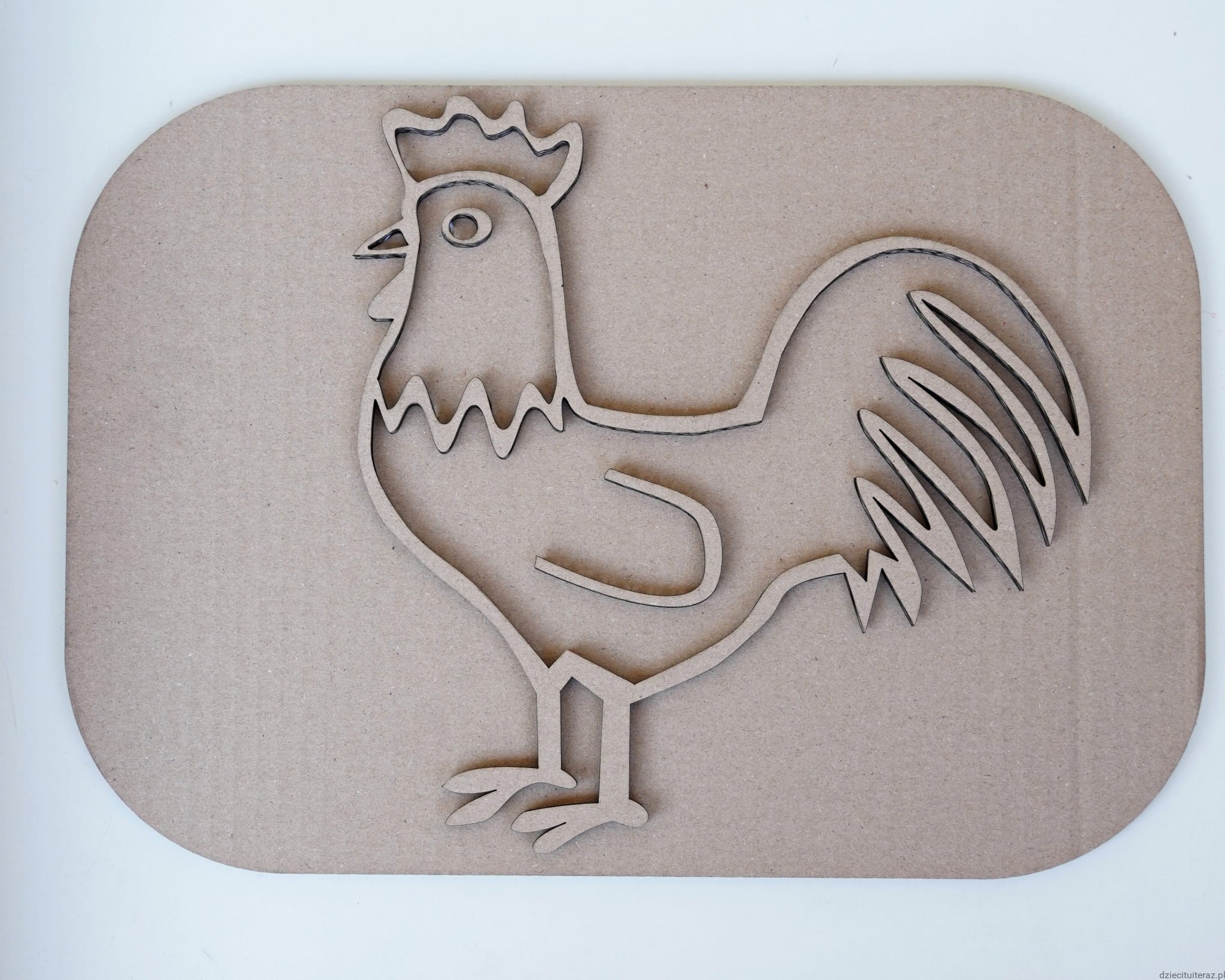 Kartonowy model w kształcie prostokąta o wymiarach 39cm x 27cm z kogutem.