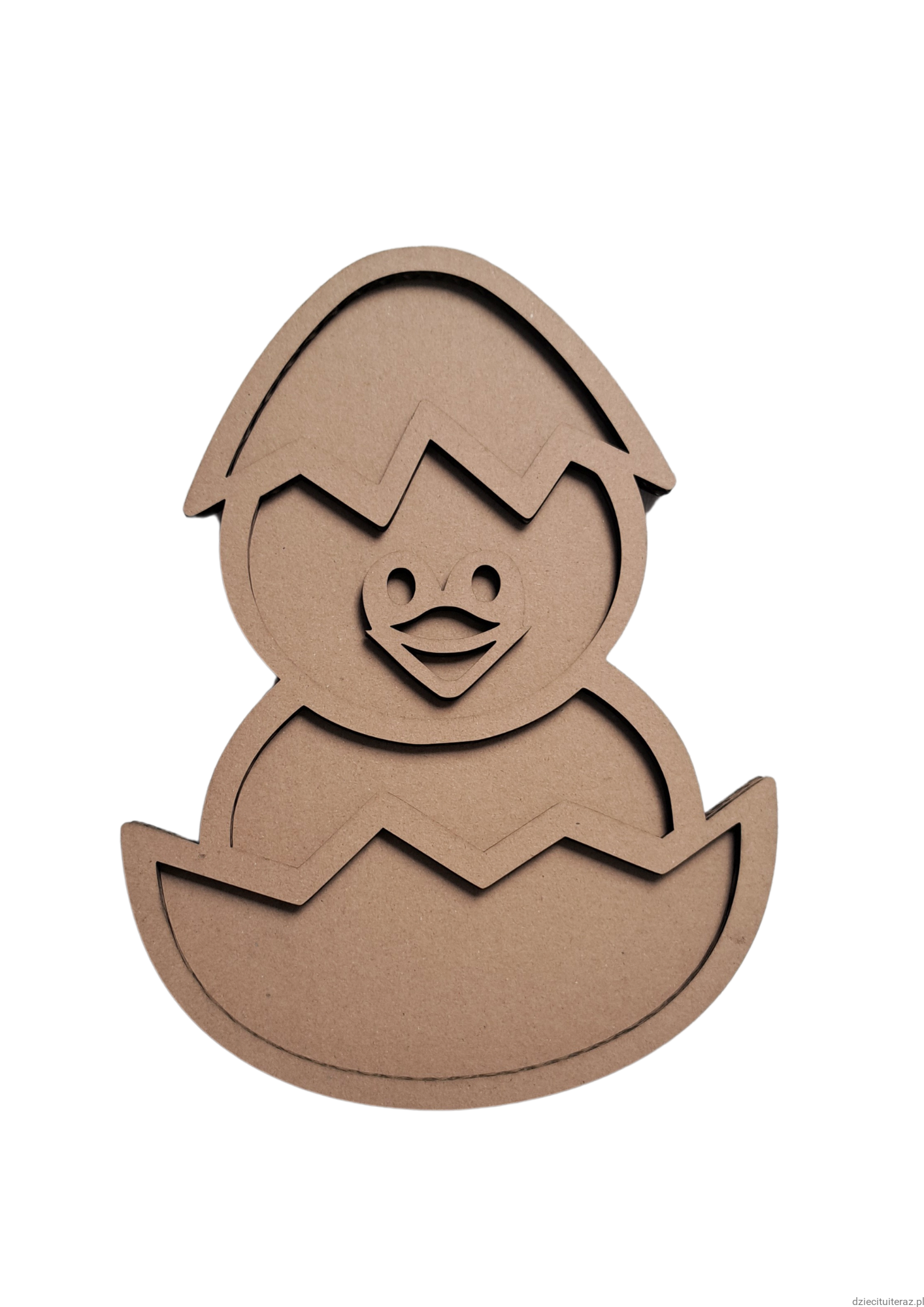 Sensokarton w kształcie kurczaka w jajku o wymiarach 24cm x 18cm.