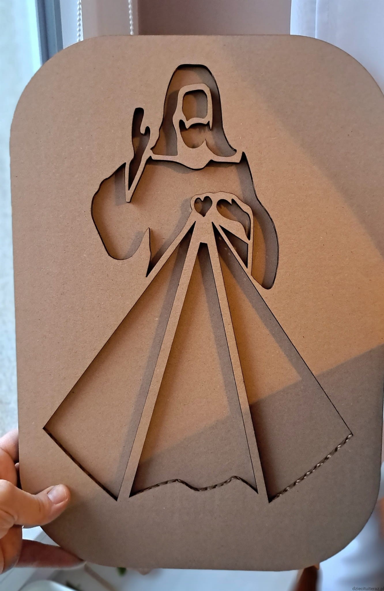 Sensokarton o wymiarach 39cm x 27cm z wizerunkiem Pana Jezusa Miłosiernego.