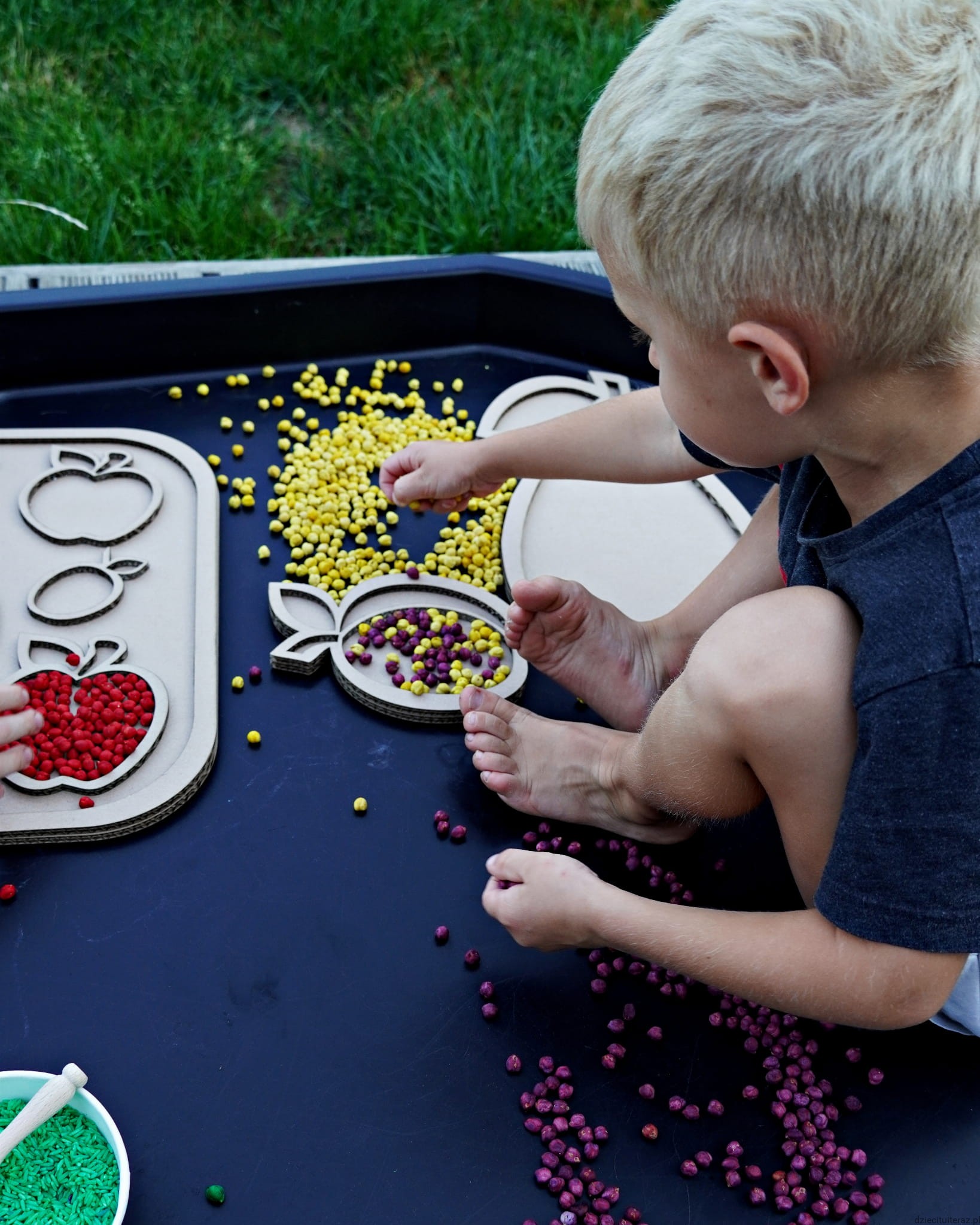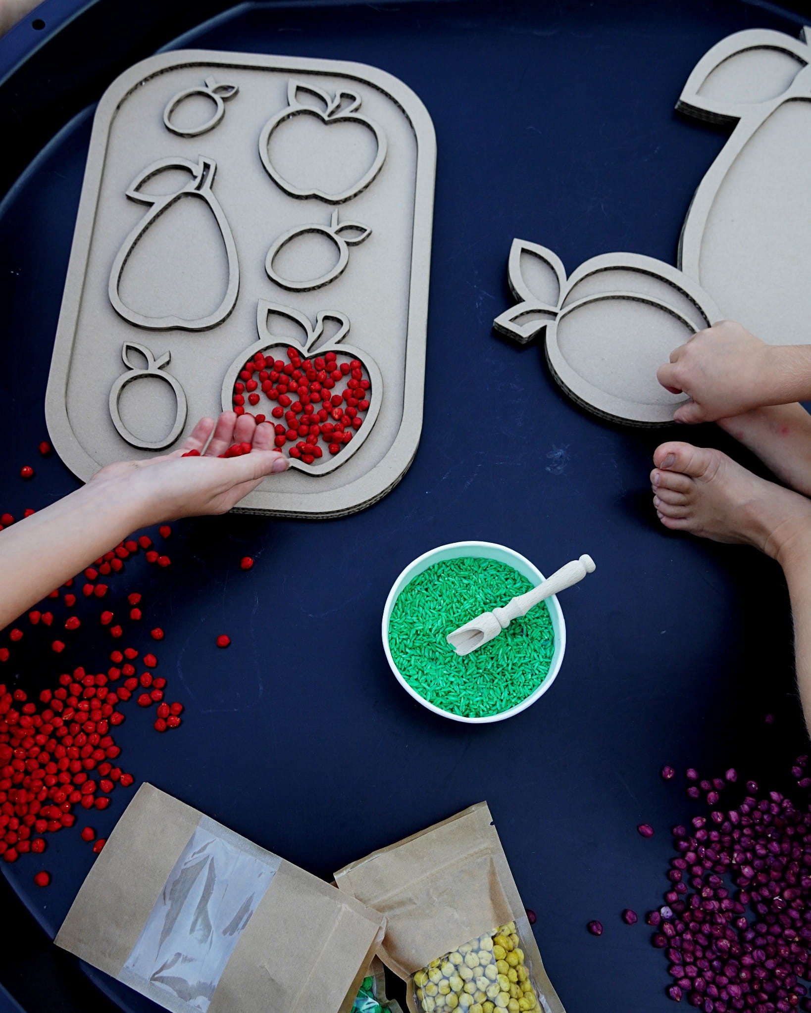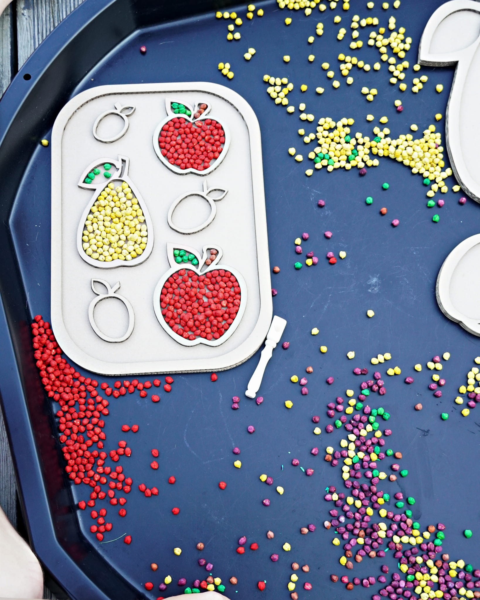 Sensokarton z owocami o wymiarach 39cm x 27cm.