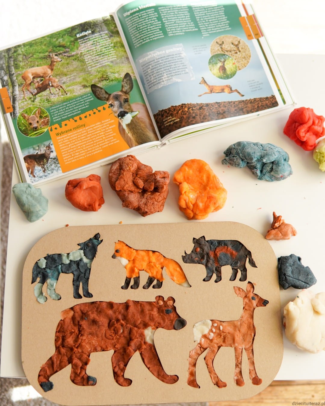 Sensokarton o wymiarach 39cm x 27cm z dzikimi zwierzętami.
