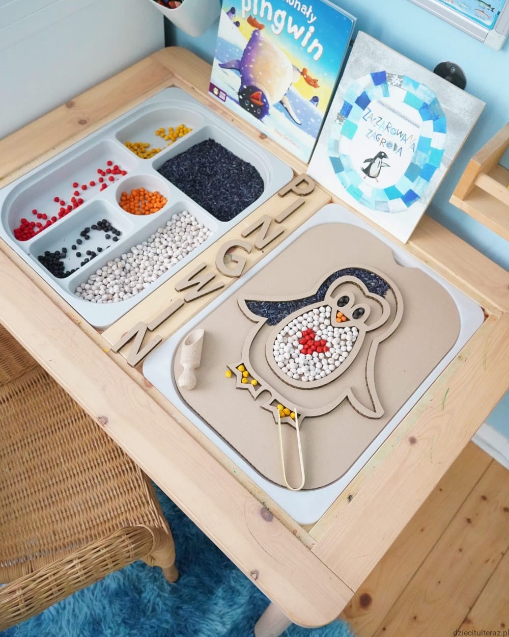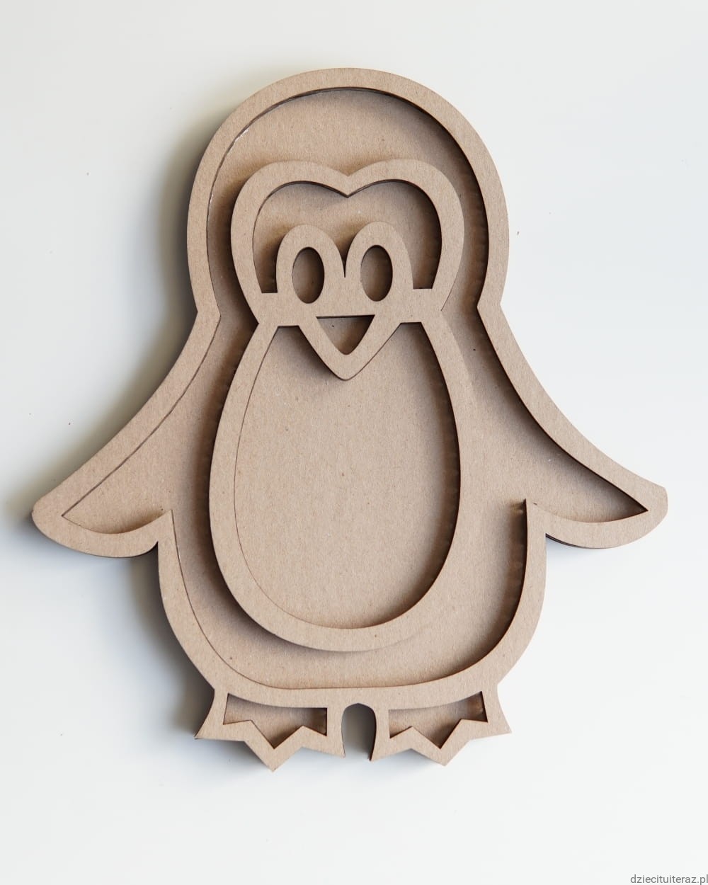 Sensokarton w kształcie pingwina o wymiarach 30xm x 27cm.