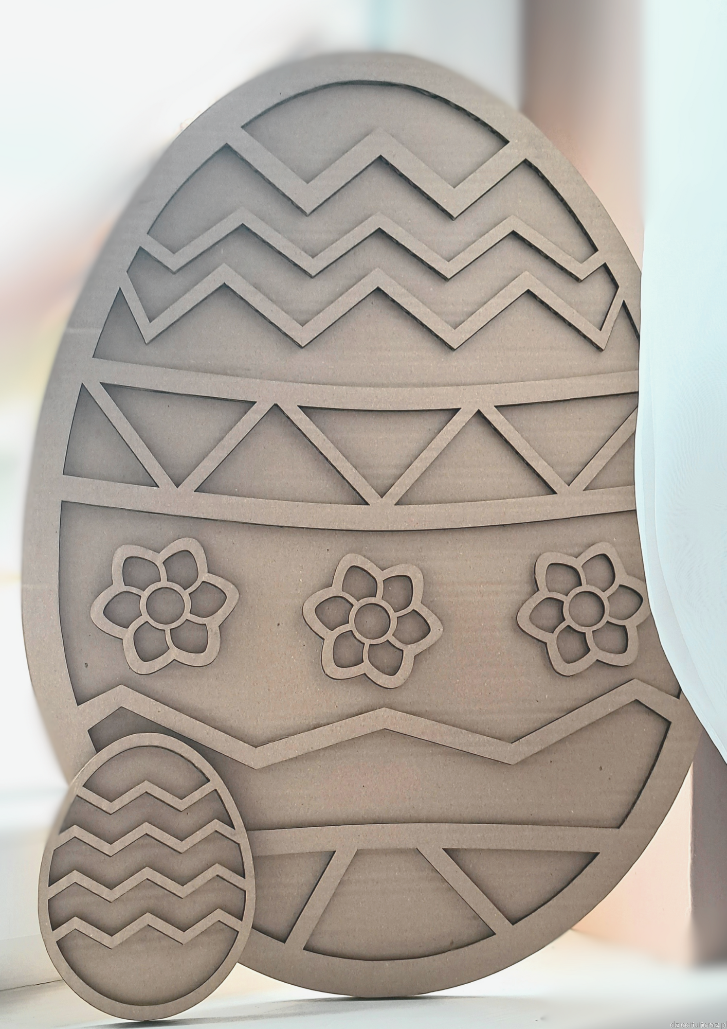 Sensokarton w kształcie pisanki o wymiarach 62cm x 45cm.