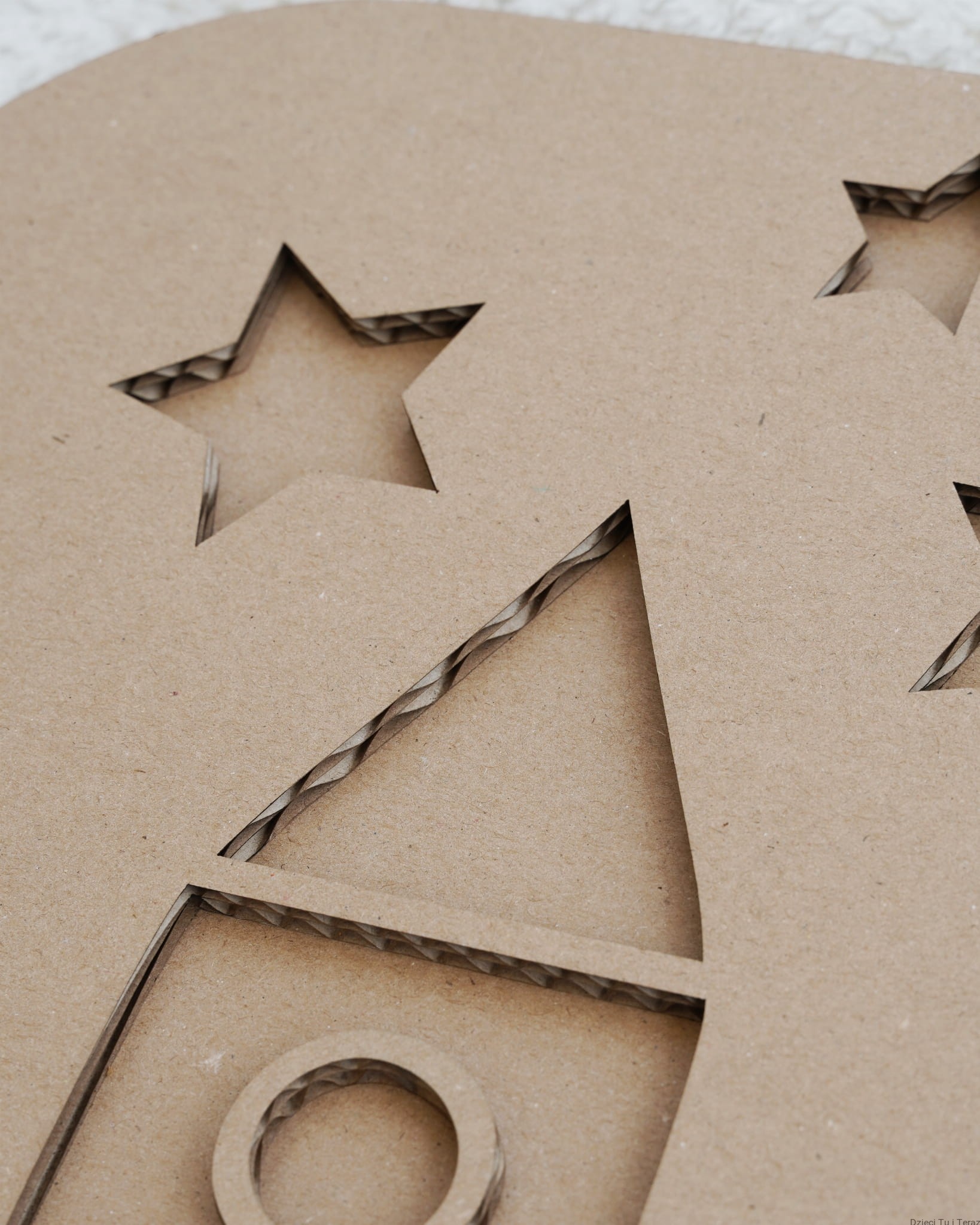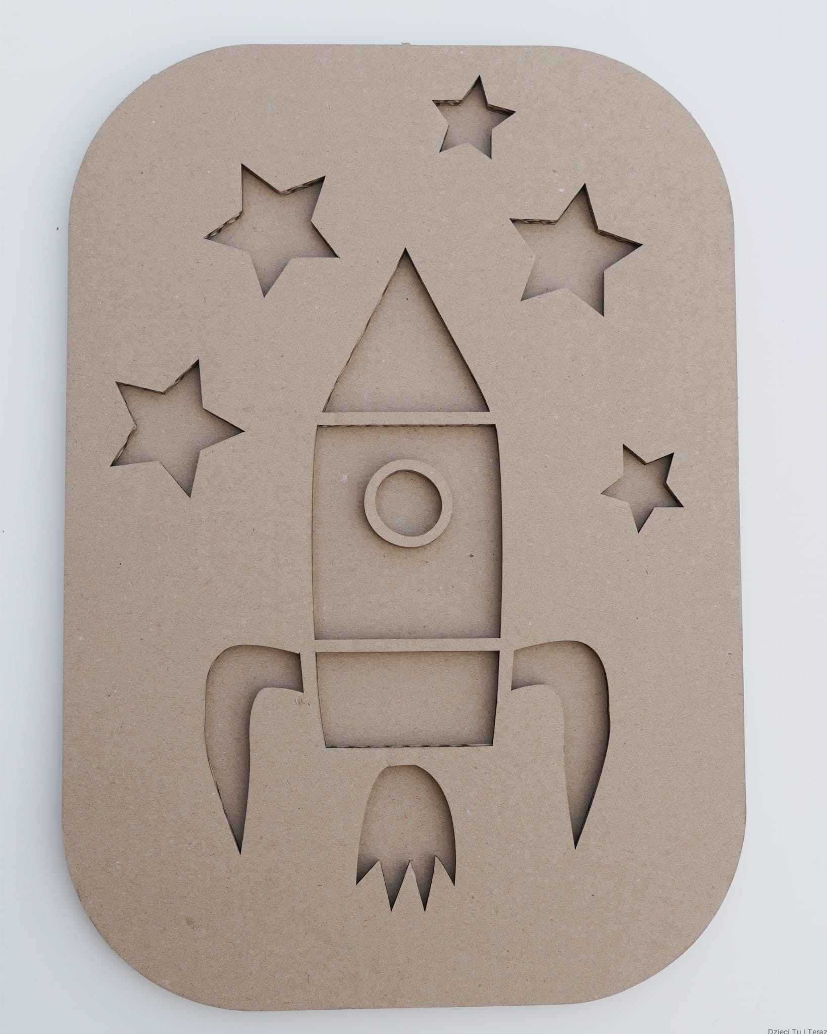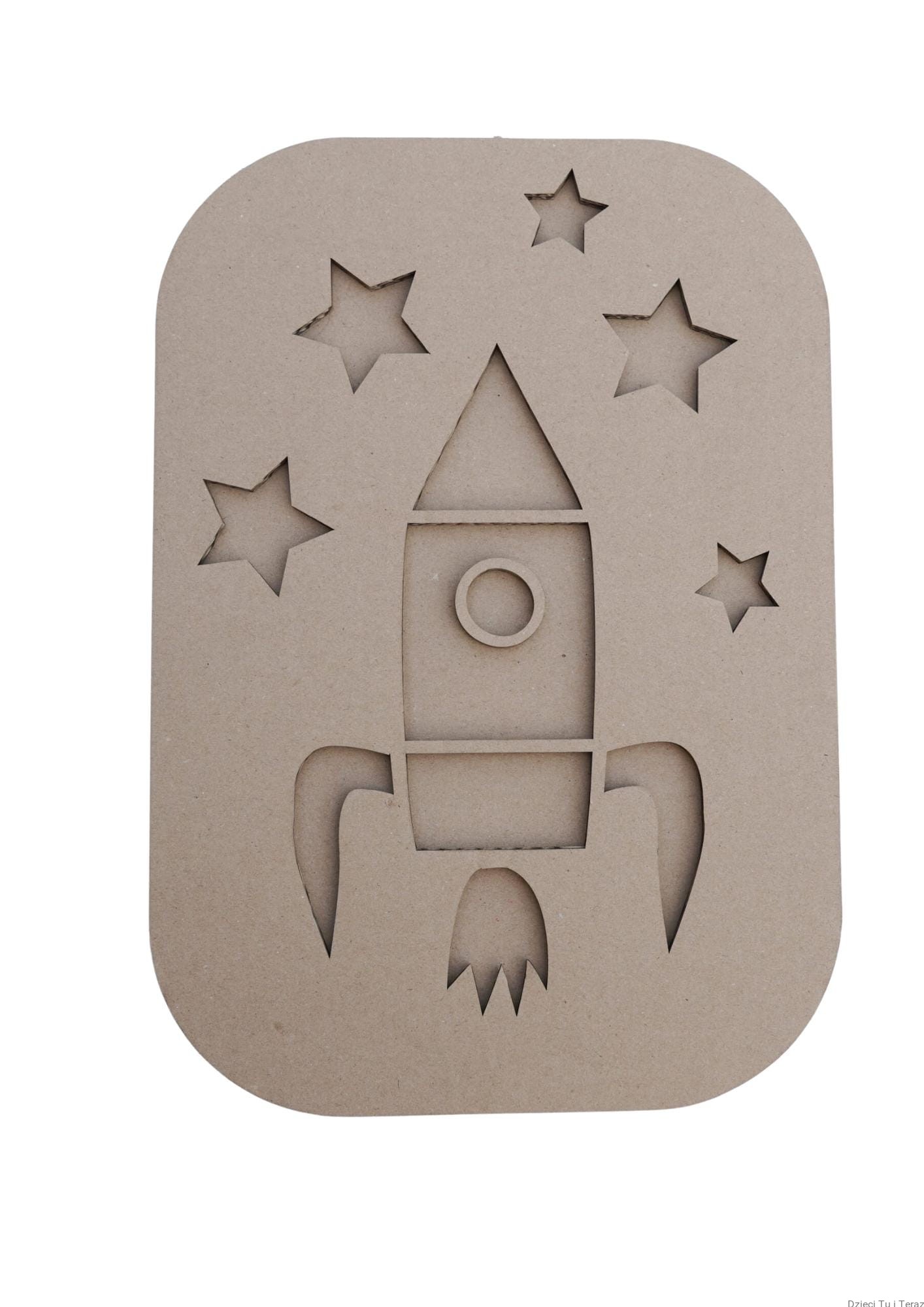 Kartonowy model rakiety z gwiazdami o wymiarach 39,5cm x 27cm (gruba tektura dwuwarstwowa).