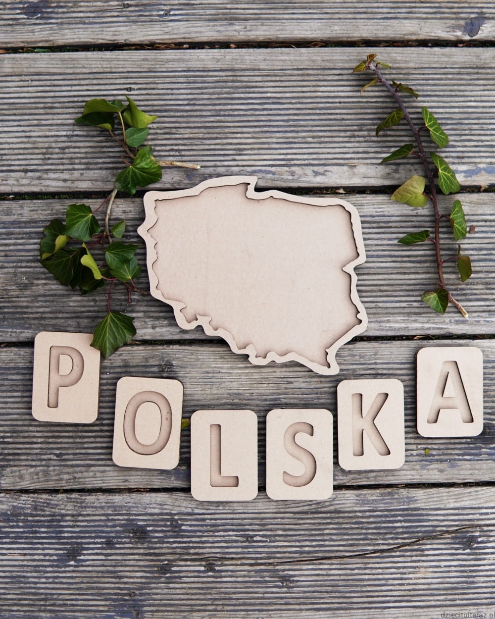 -napis POLSKA z sensokartoników o wymiarach 92mm x 68mm.