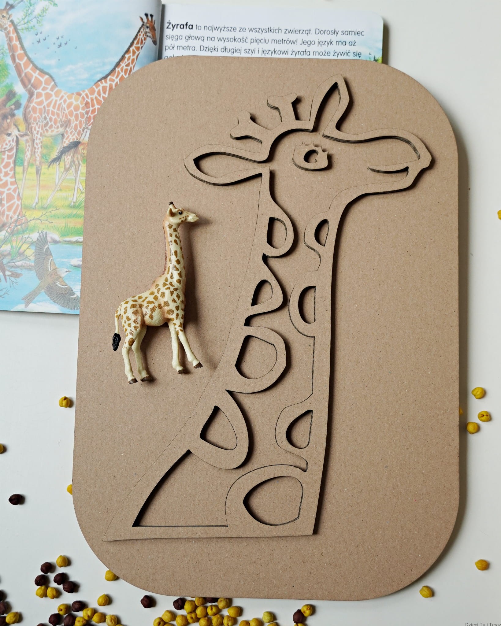 Kartonowy model z żyrafą o wymiarach 39cm x 27cm (gruba tektura dwuwarstwowa)