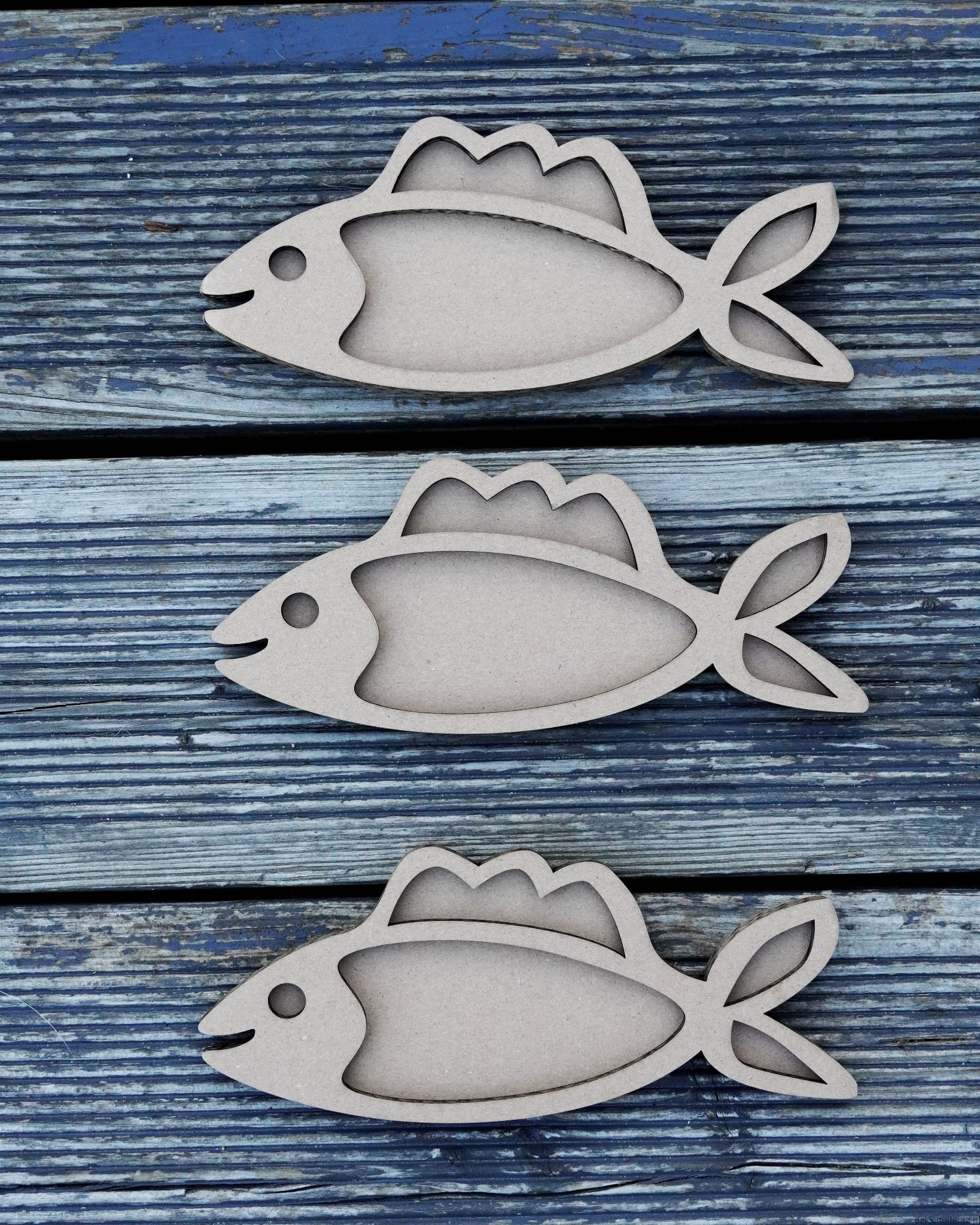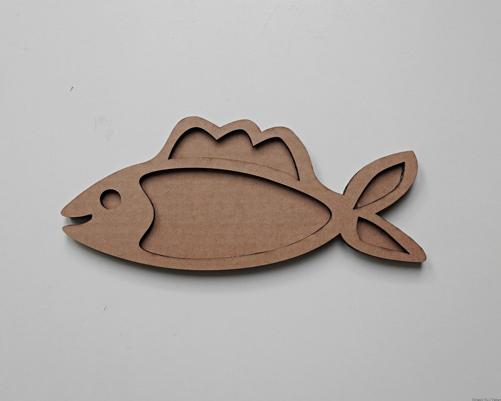 Kartonowe modele rybek o wymiarach 16cm x 7cm (gruba tektura dwuwarstwowa).