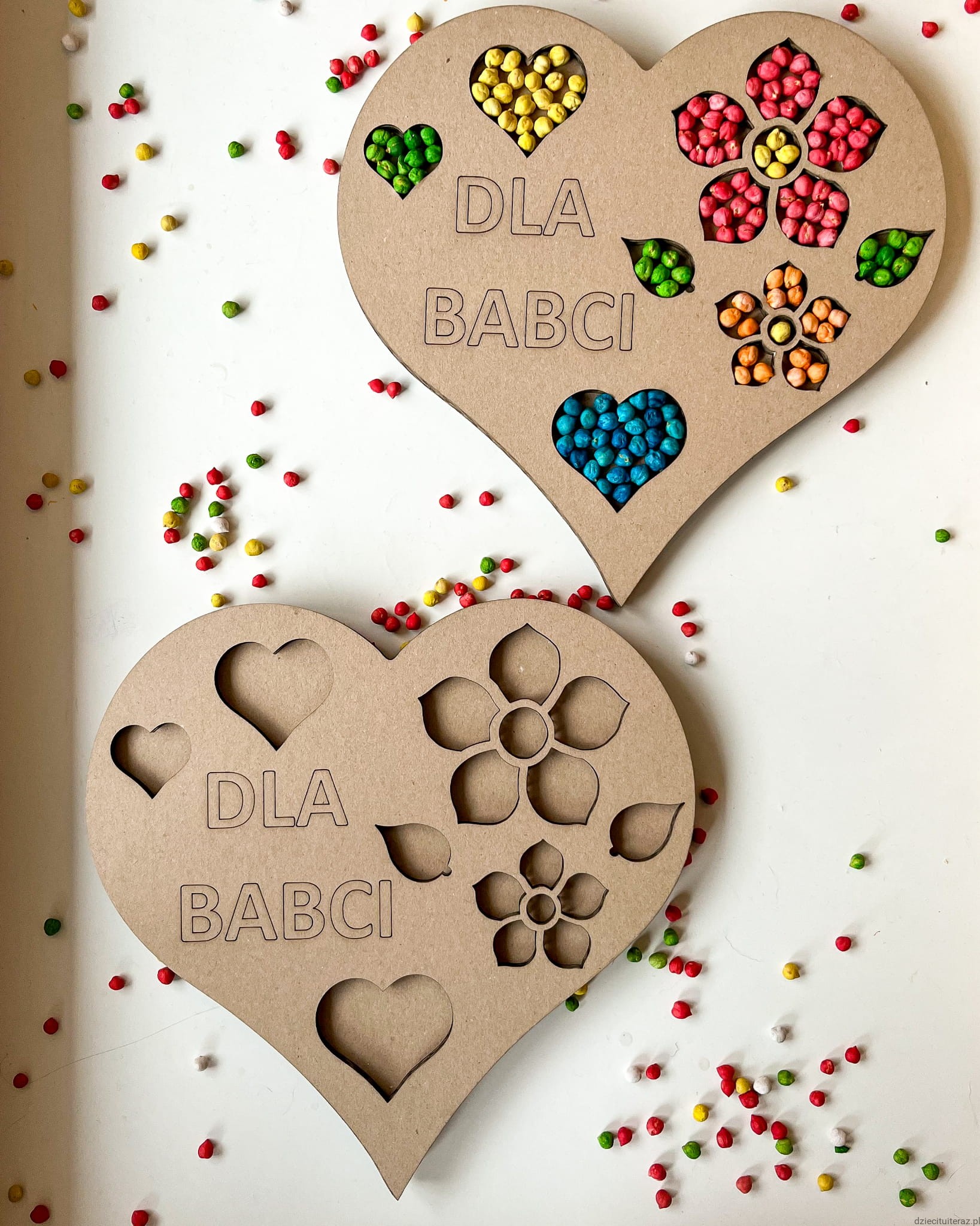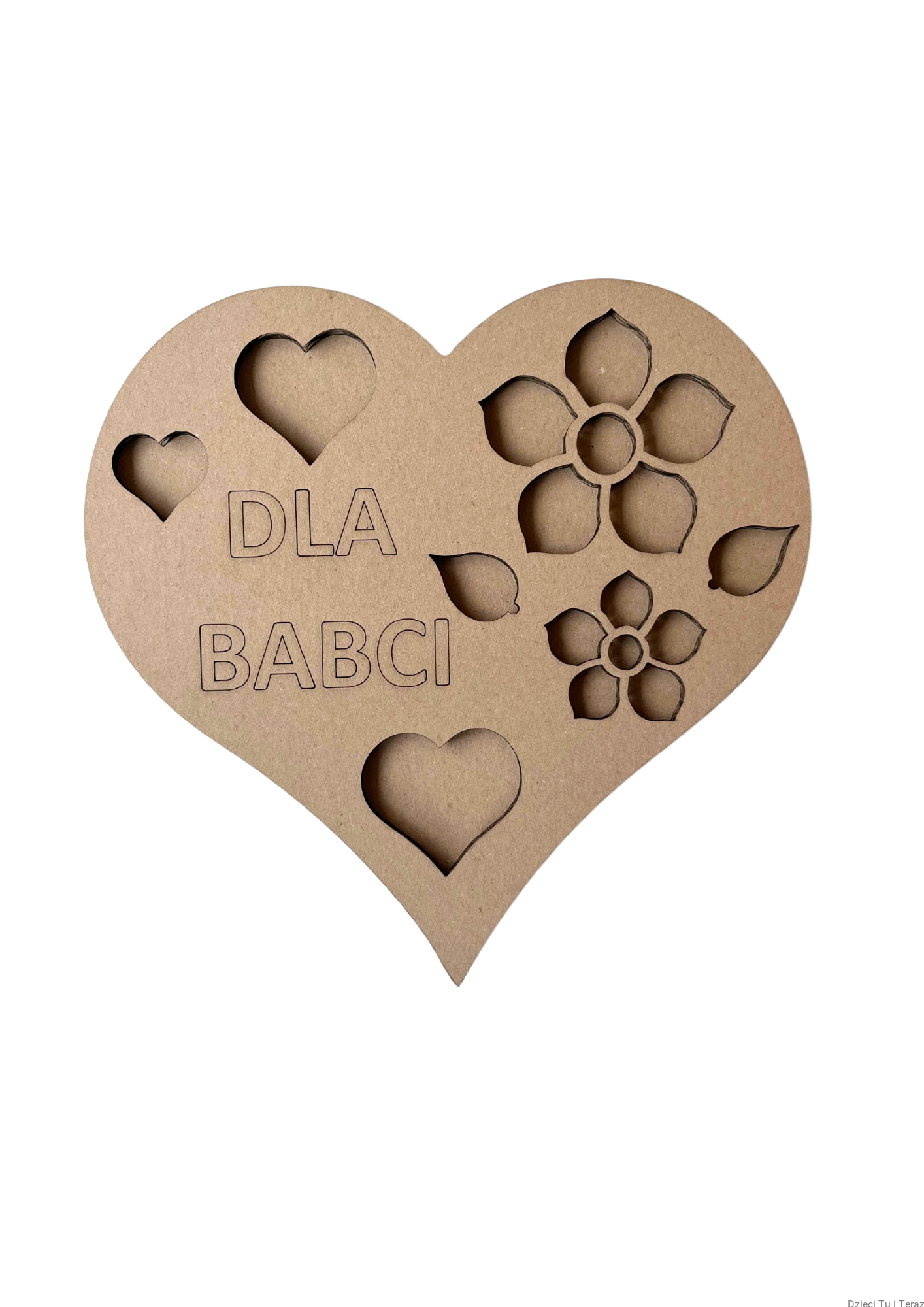 Sensokarton w kształcie serca z napisem DLA BABCI