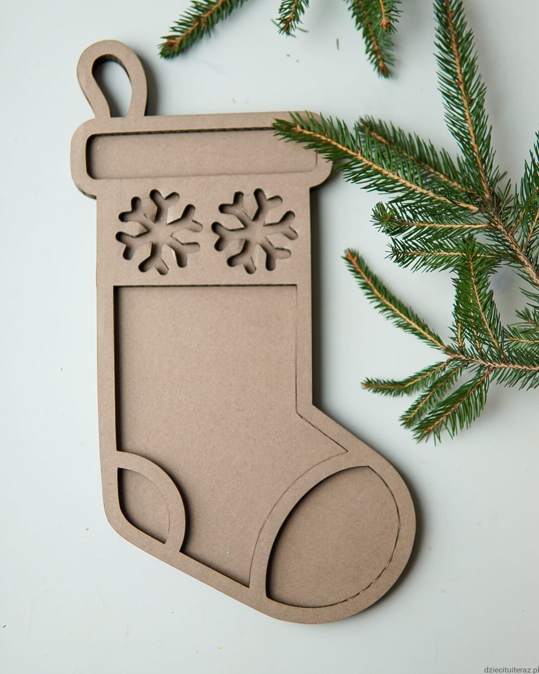 Sensokarton w kształcie skarpety o wymiarach 32cm x 26cm.