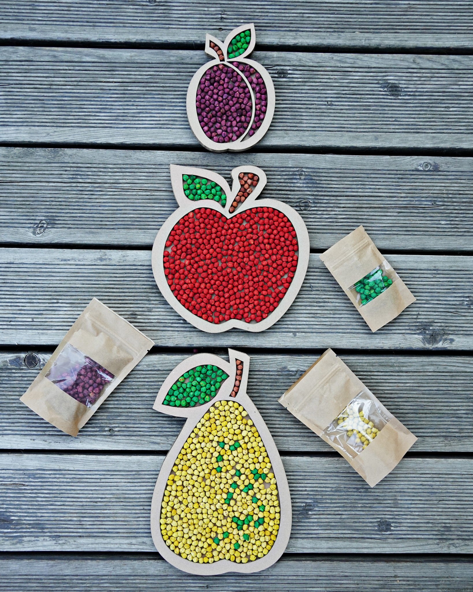 Sensokarton w kształcie śliwki o wymiarach 13cm x 18cm.