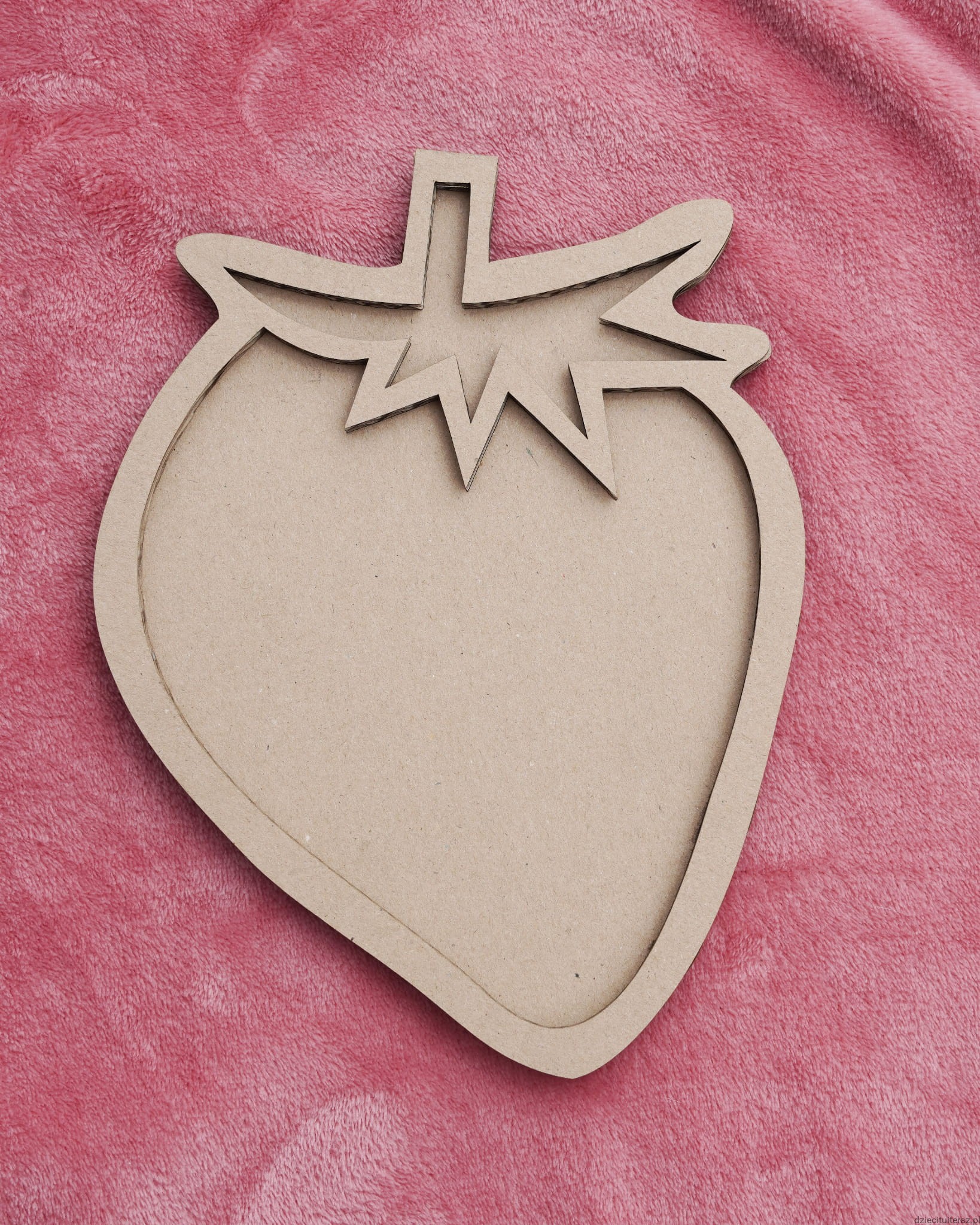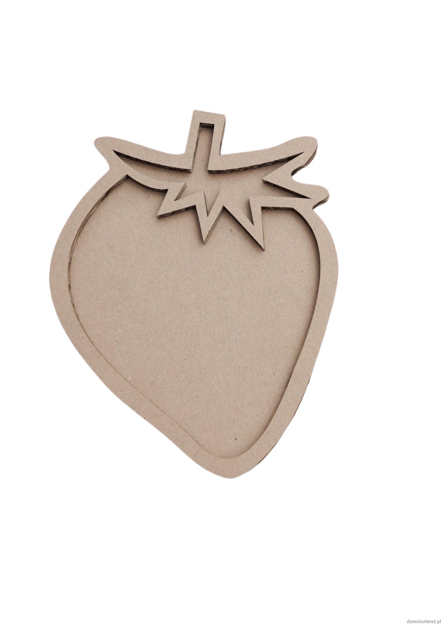Sensokarton w kształcie truskawki o wymiarach 25cm x 19cm.