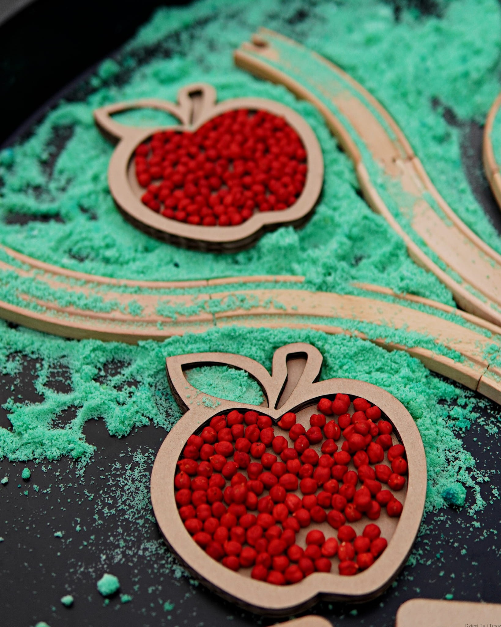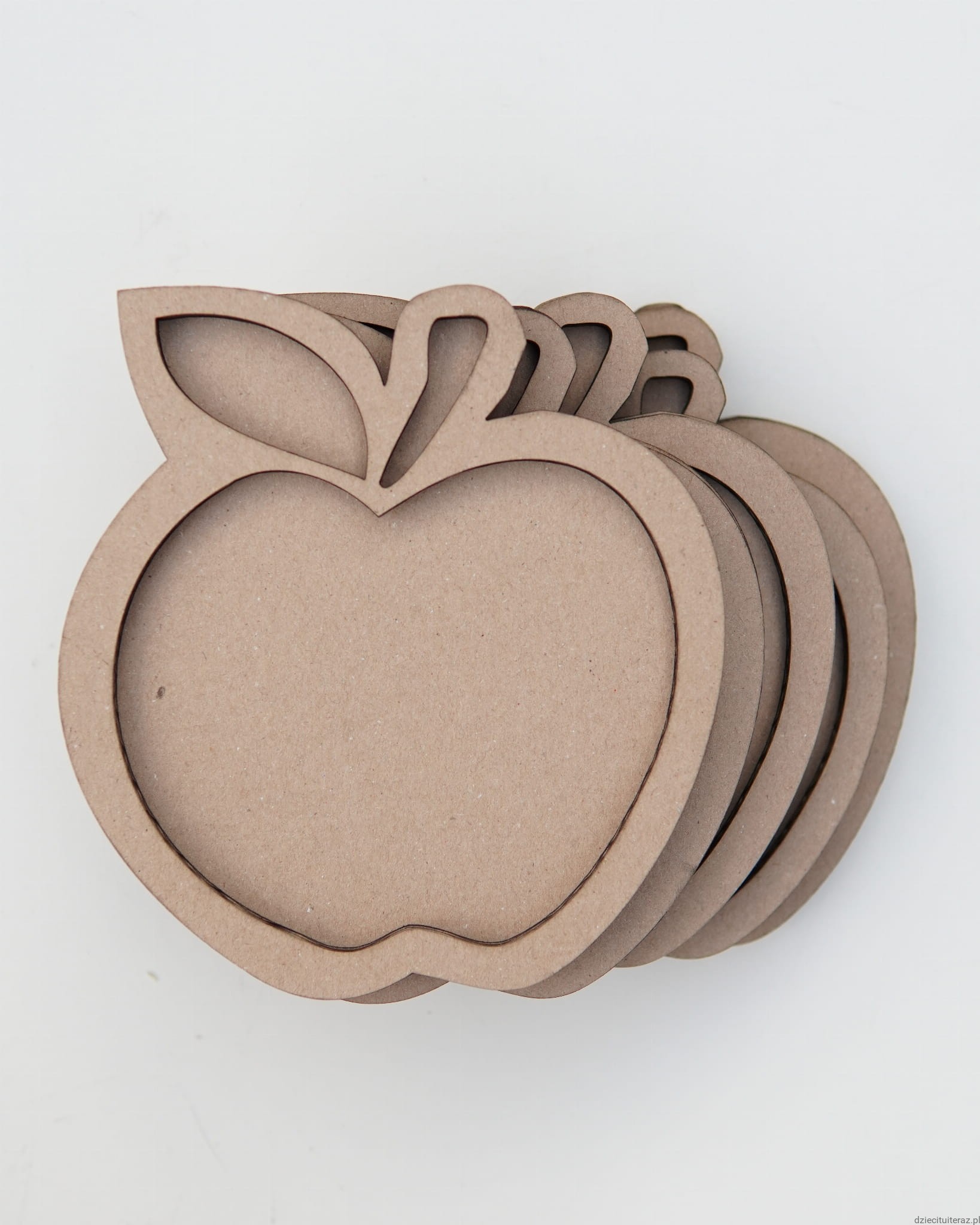 Jabłuszko kartonowe o wymiarach 12cm x 13cm.
