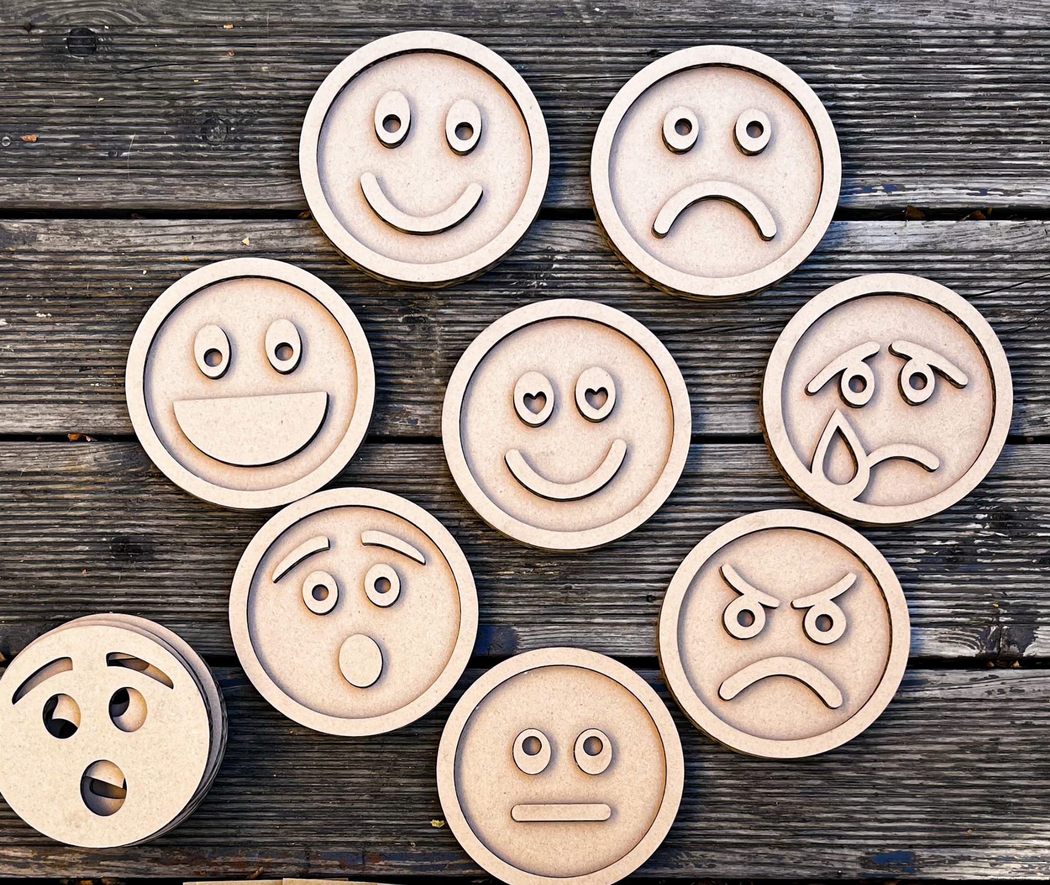 Zestaw 8 sensokartonów z emocjami, średnica 17cm.