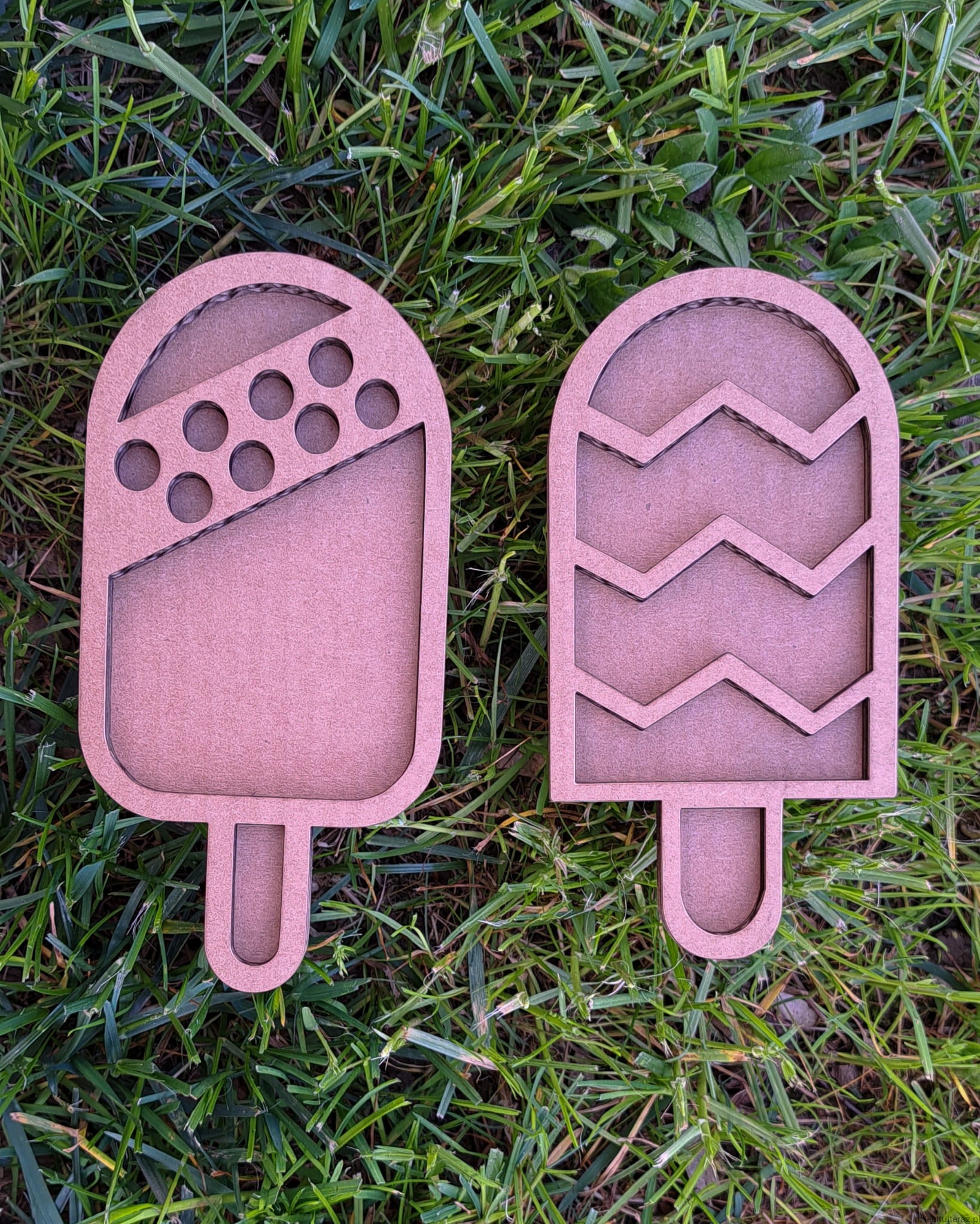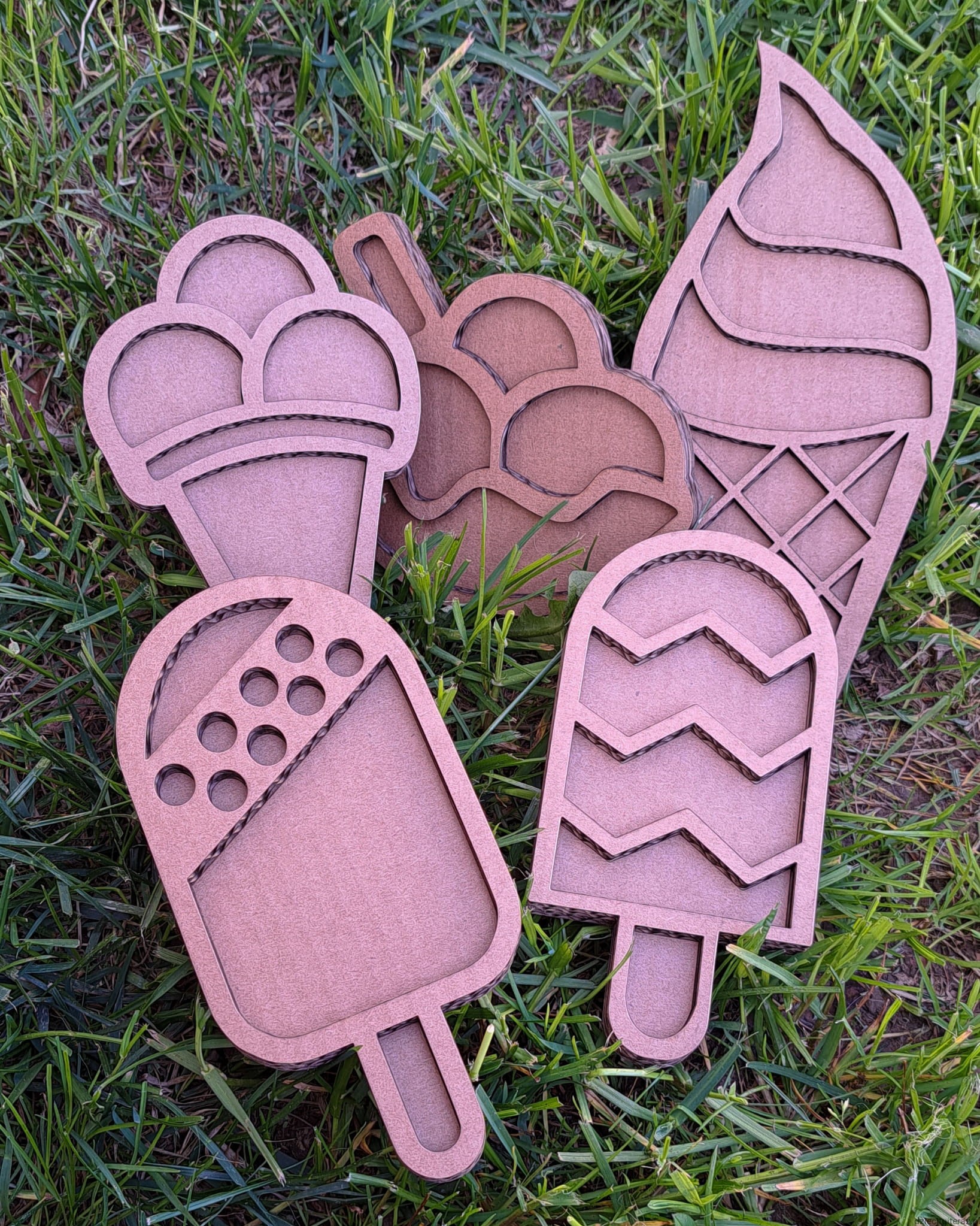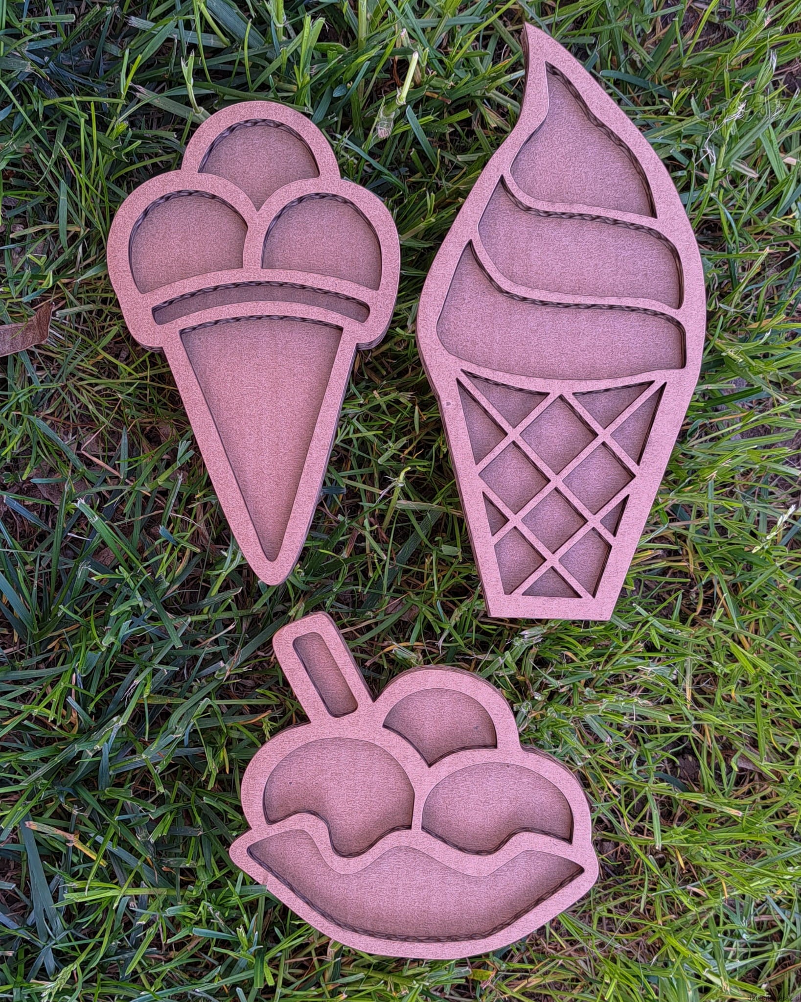 Zestaw 5 sensokartonów w kształcie lodów.