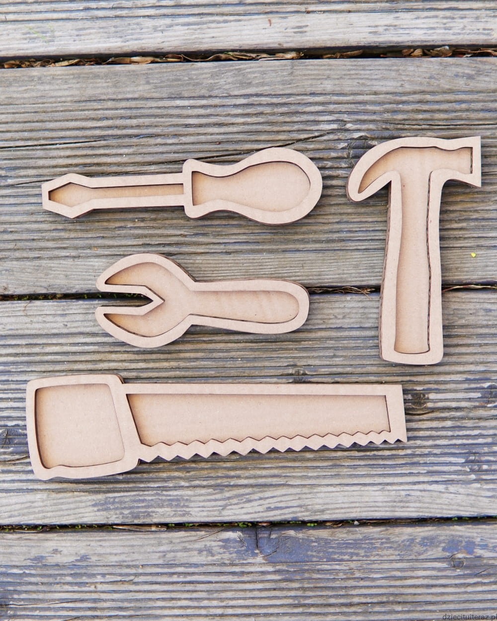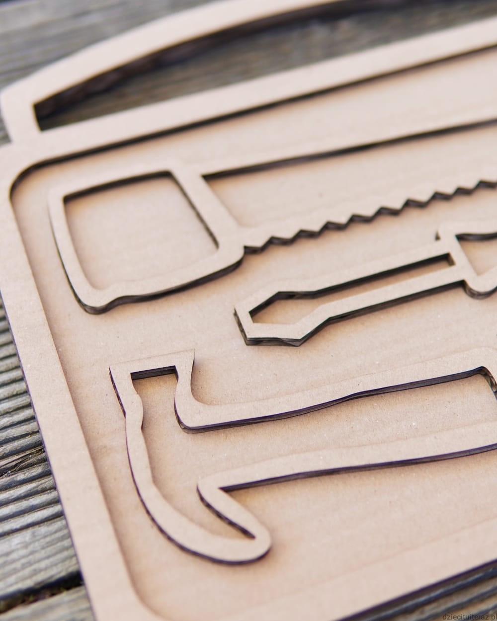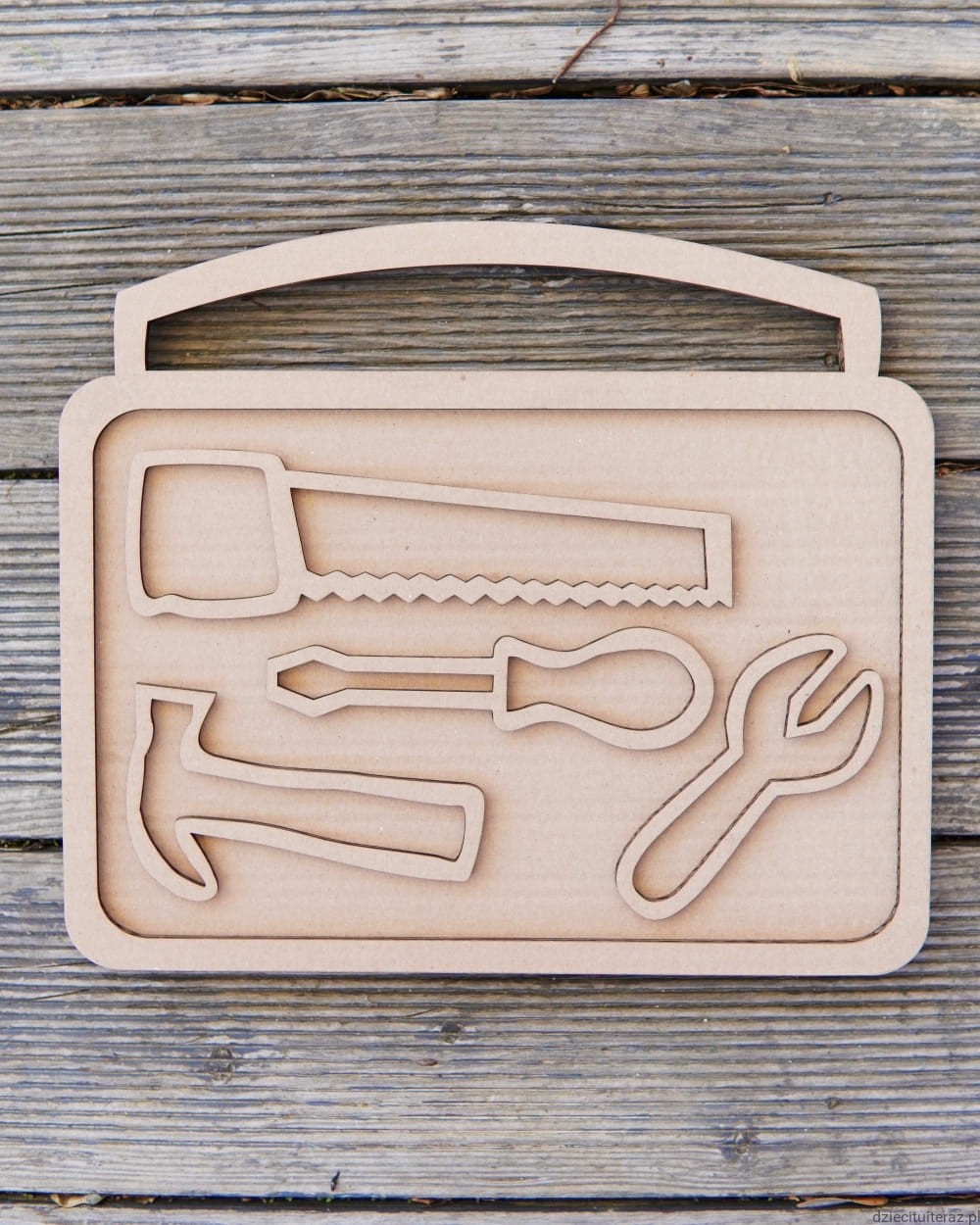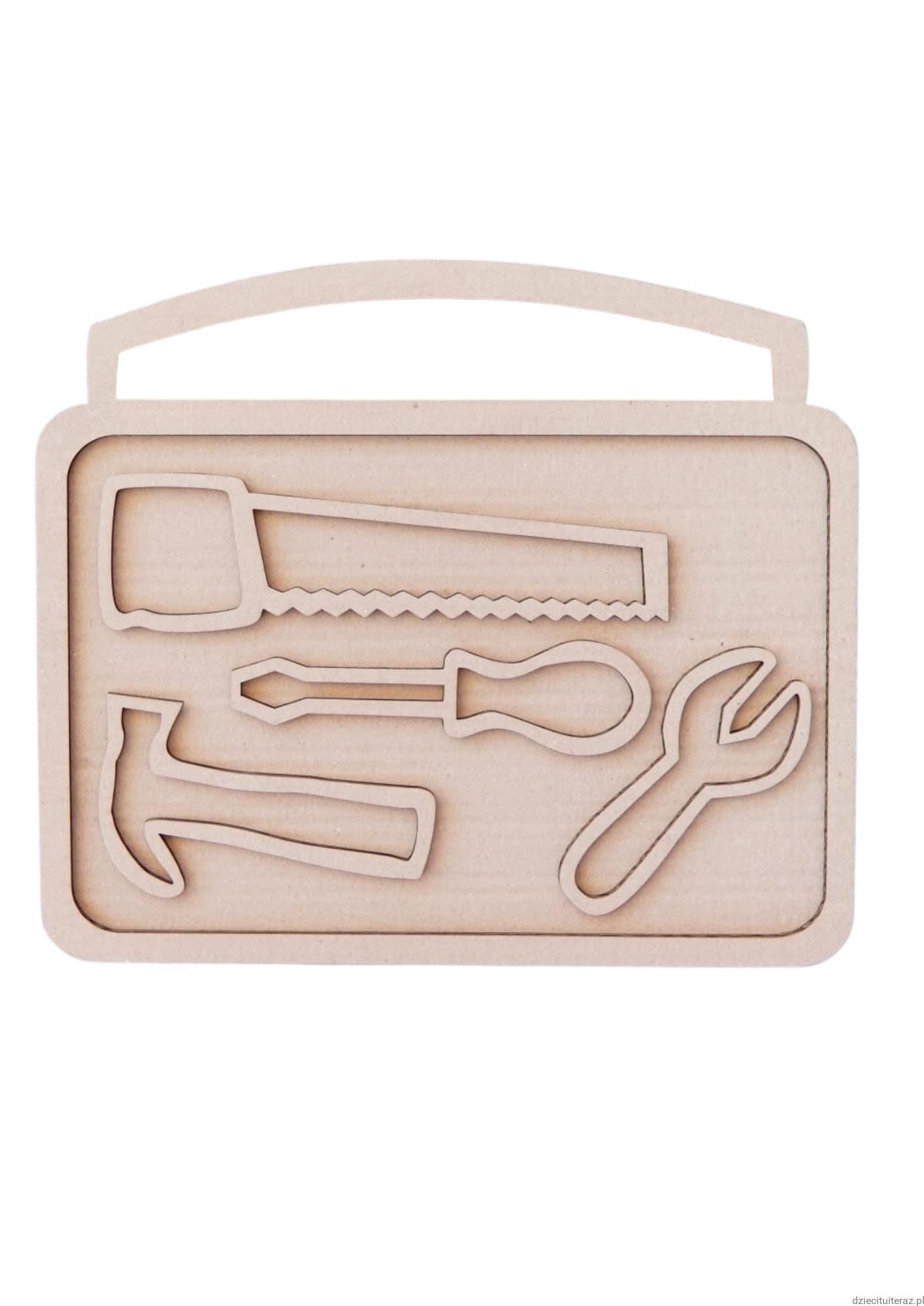 Sensokarton w kształcie skrzyni 35cm x 30cm oraz 4 sztuki sensokartonów w kształcie narzędzi:
