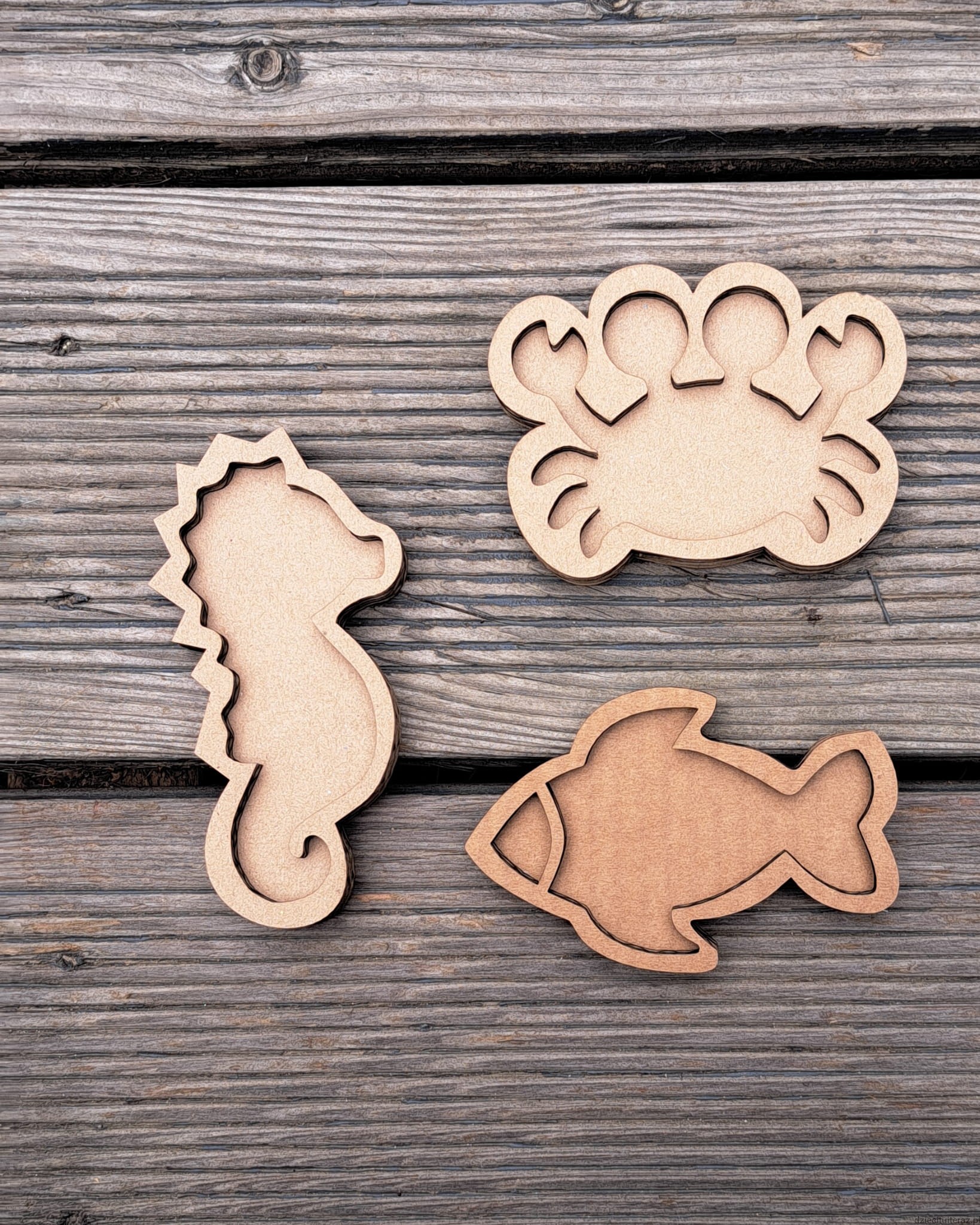 Zestaw rybka, konik morski i krabik.