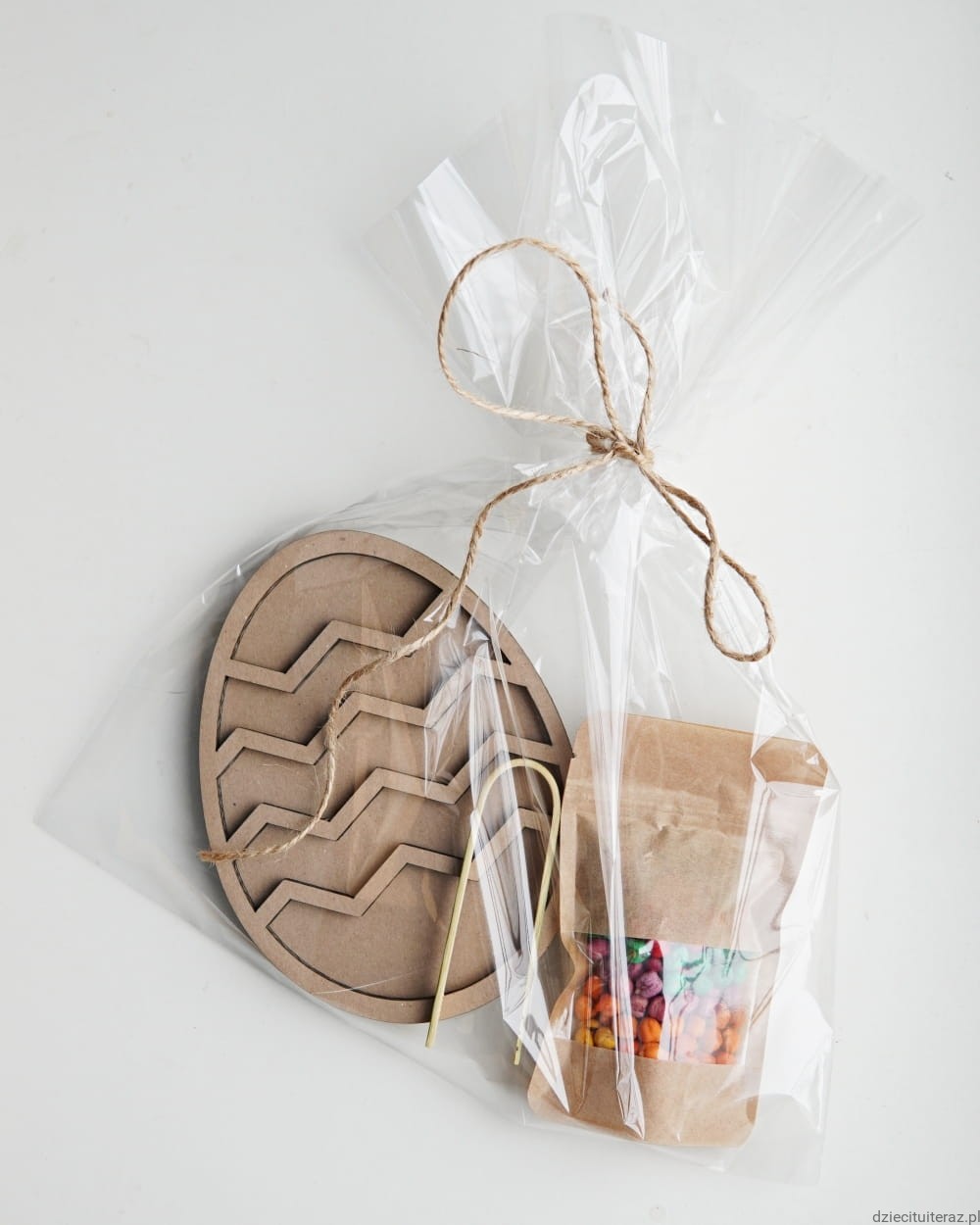 - sensokarton w kształcie pisanki o wymiarach 17cm x 12cm.