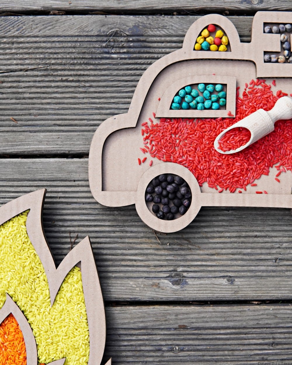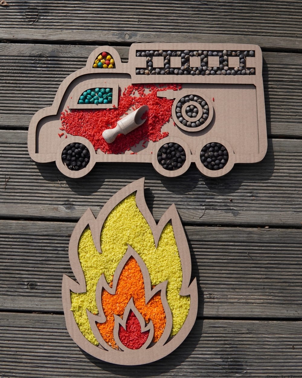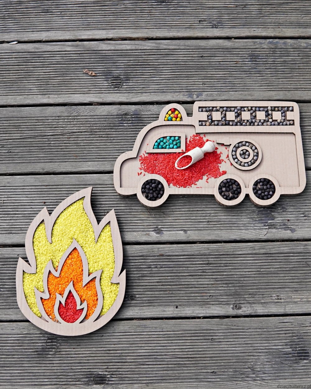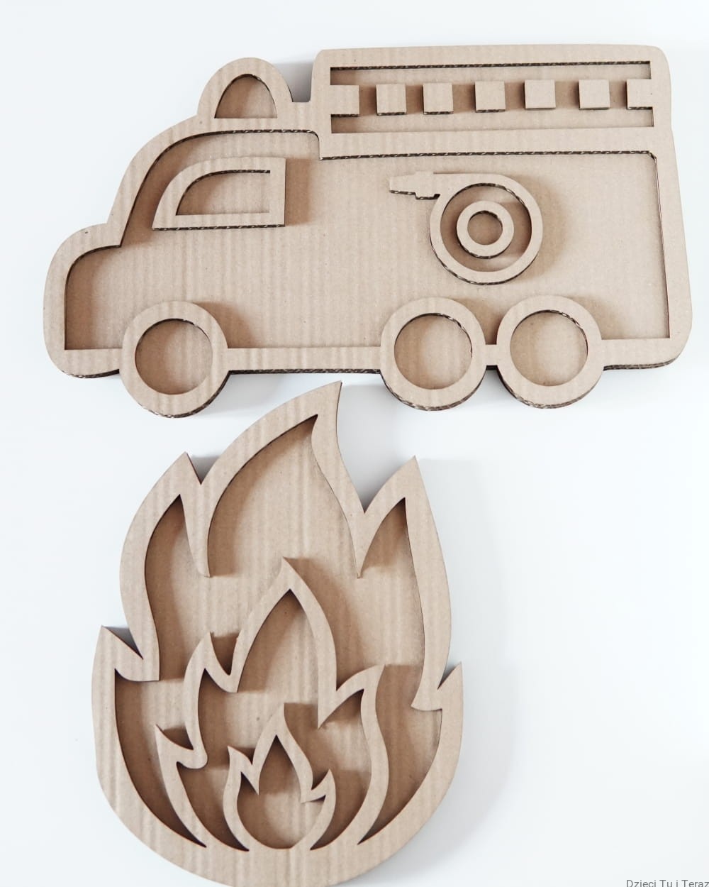 - kartonowe wzory płomień i wóz strazacki