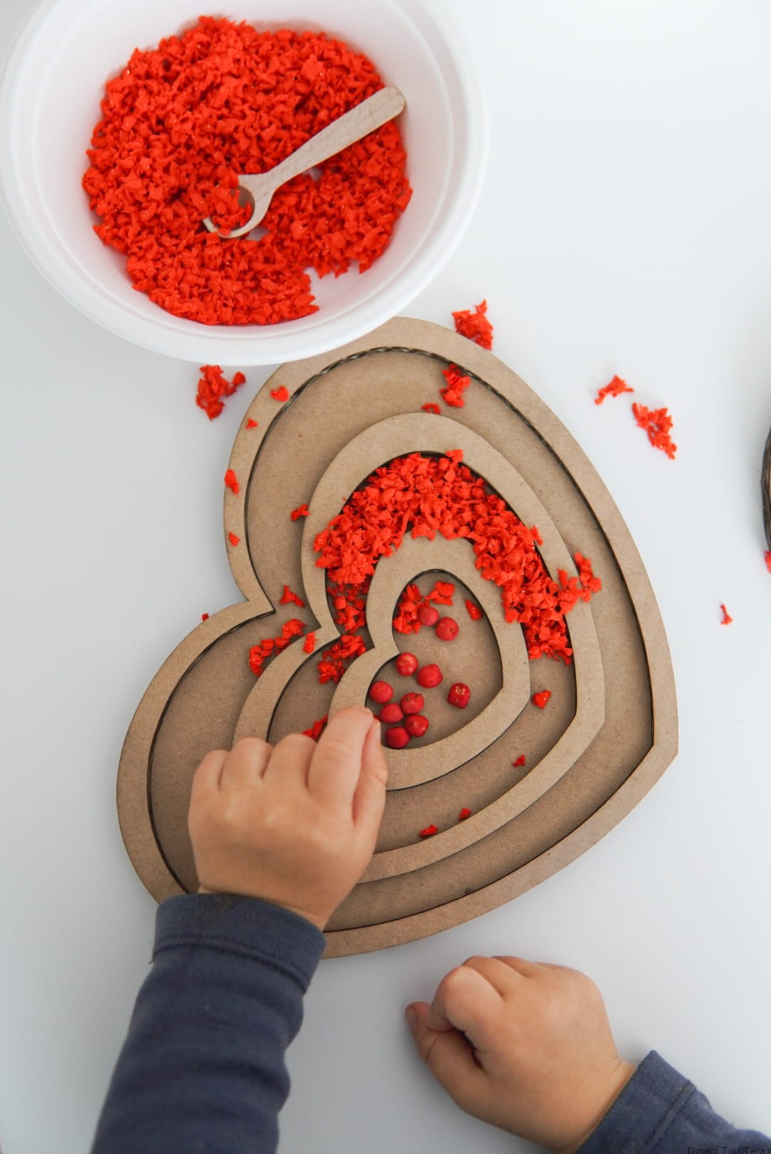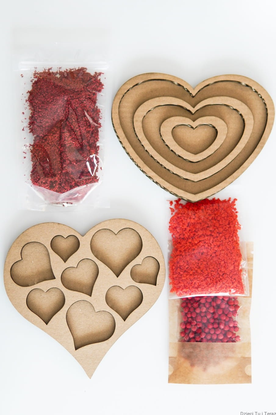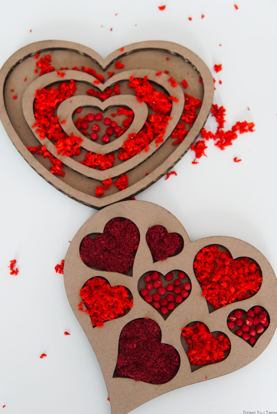 - 2 x sensokarton w kształcie serca o wymiarach ok 20cm (różne wzory)