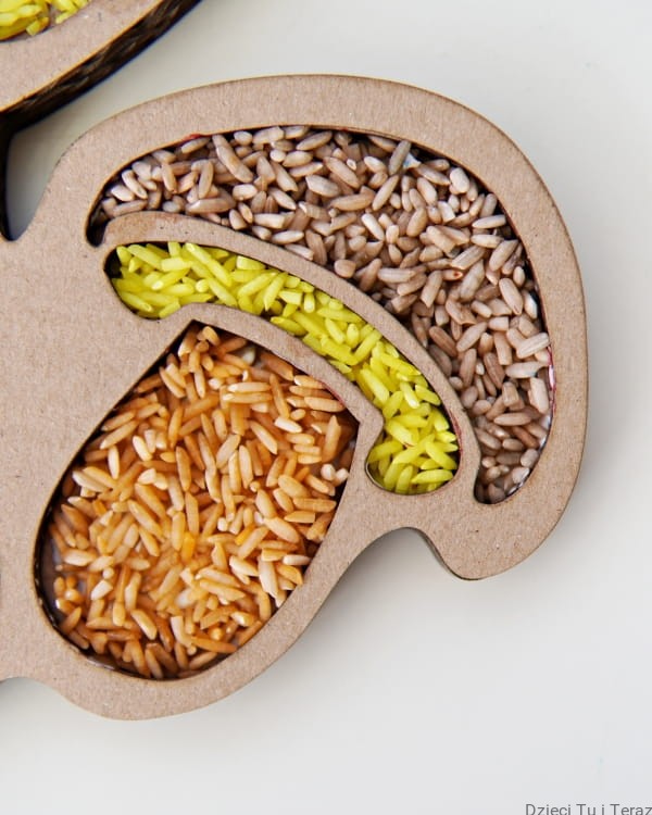 Pomoc terapeutyczna jest w pełni ekologiczna, zrobiona z tektury i naturalnych ziaren.