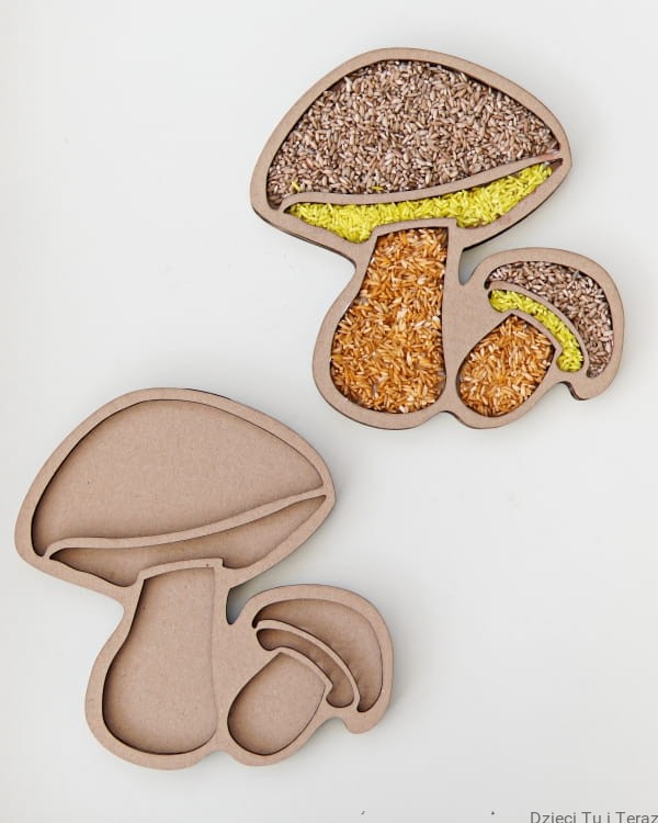 - sensokarton w kształcie grzybków o wymiarach 20cm x 20cm,