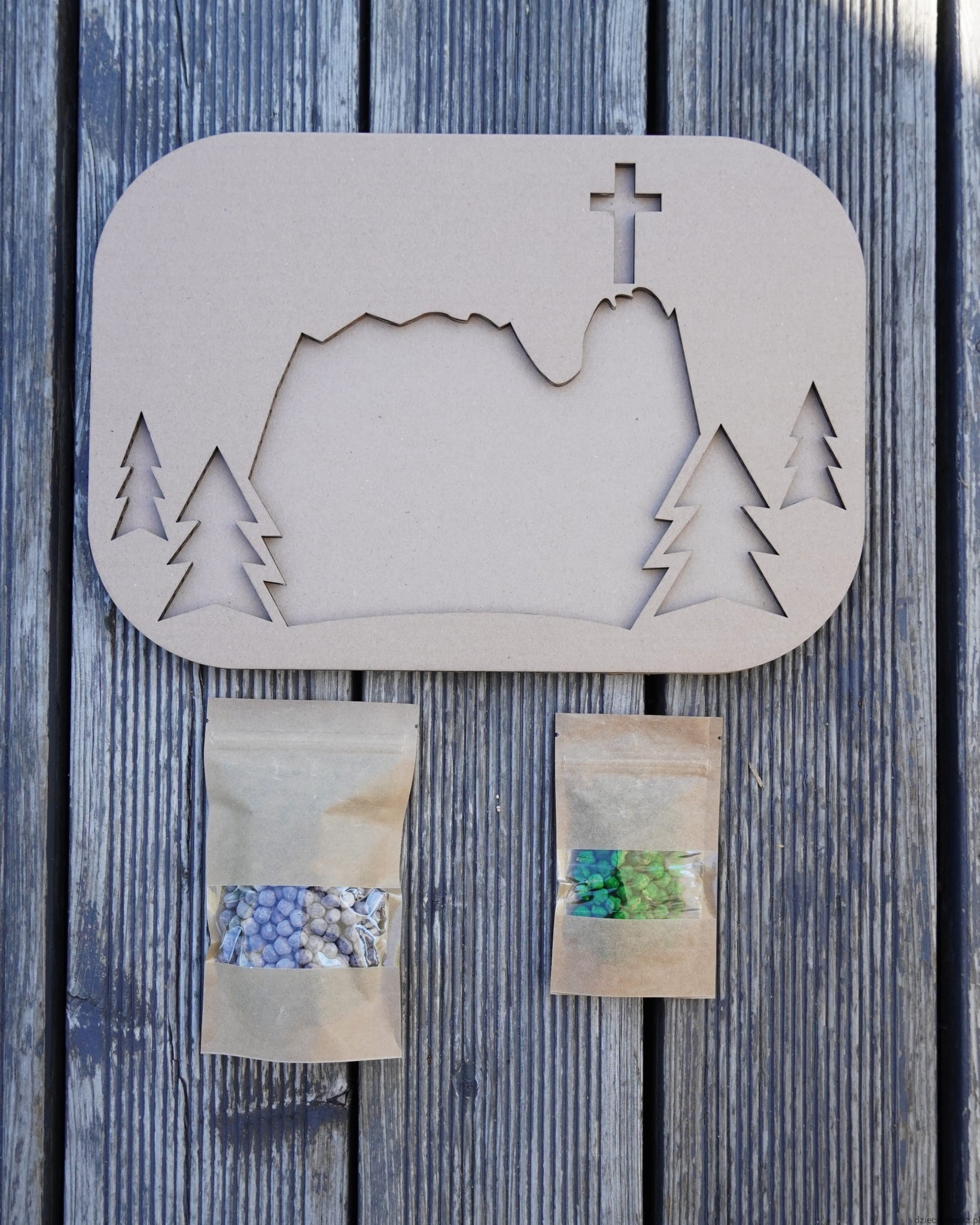 - kartonowy model góry o wymiarze 39cm x27cm (gruba tektura dwuwarstwowa)