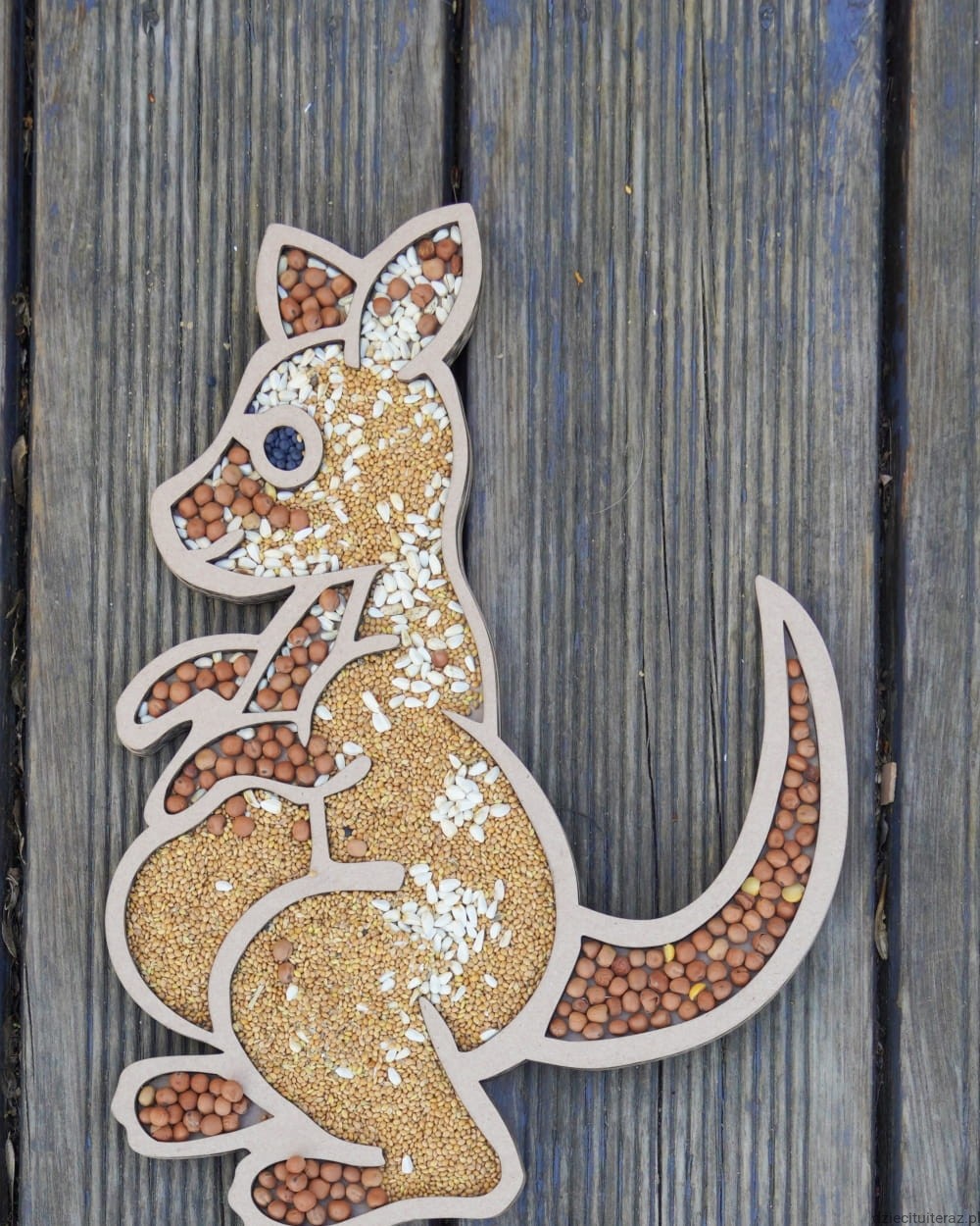 Zestaw składa się z kartonowego modelu kangura oraz trzech opakowań naturalnych ziaren.