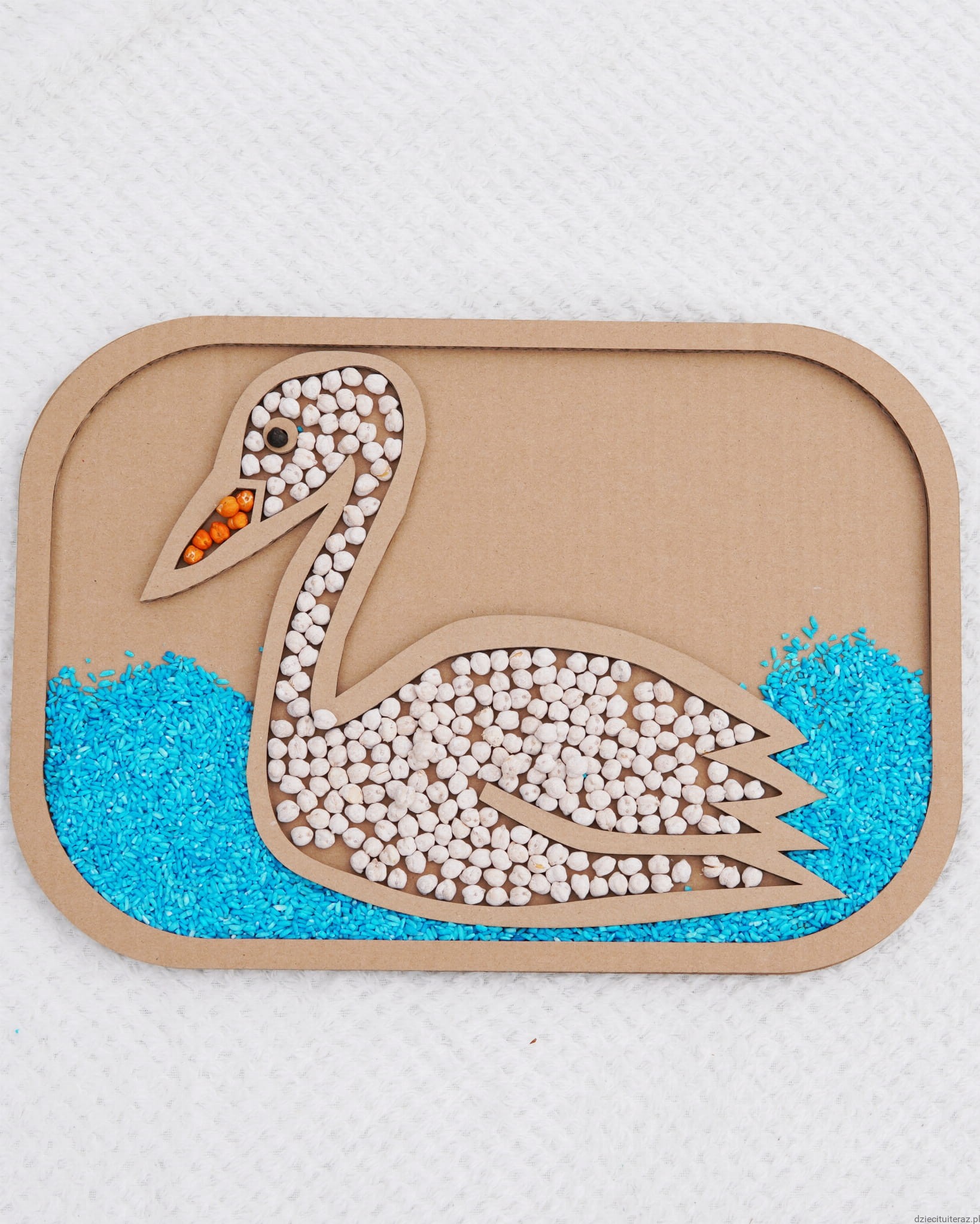 - kartonowy model łabędzia z owalną podkładką o wymiarach 39,5cm x 27,5cm (gruba tektura dwuwarstwowa)