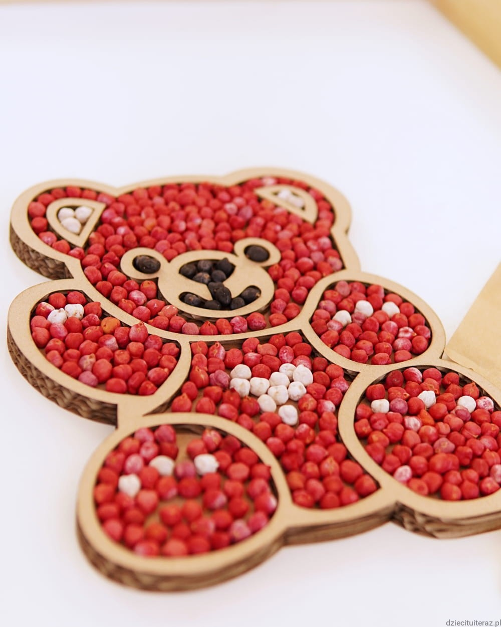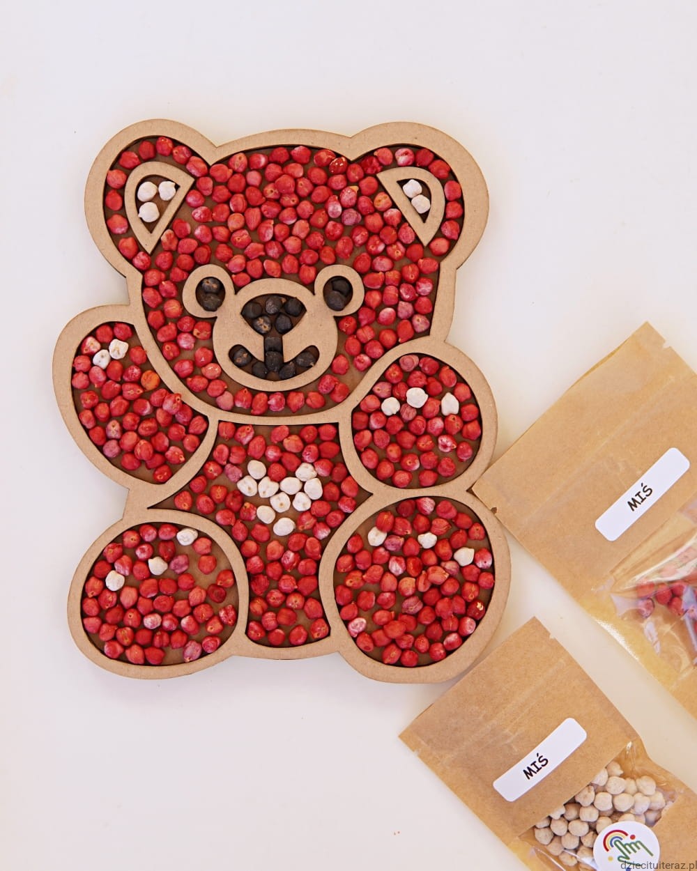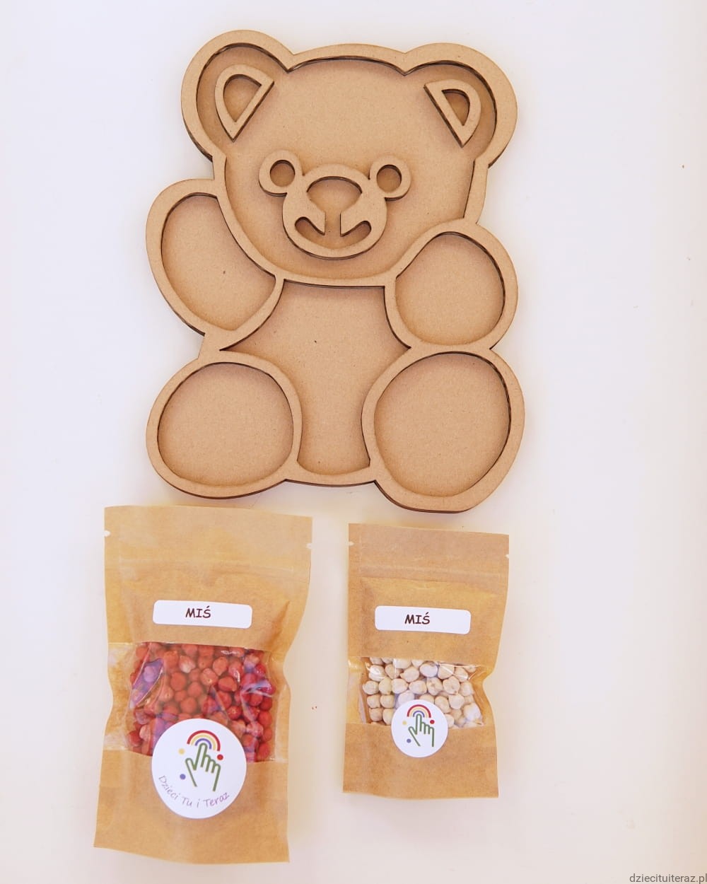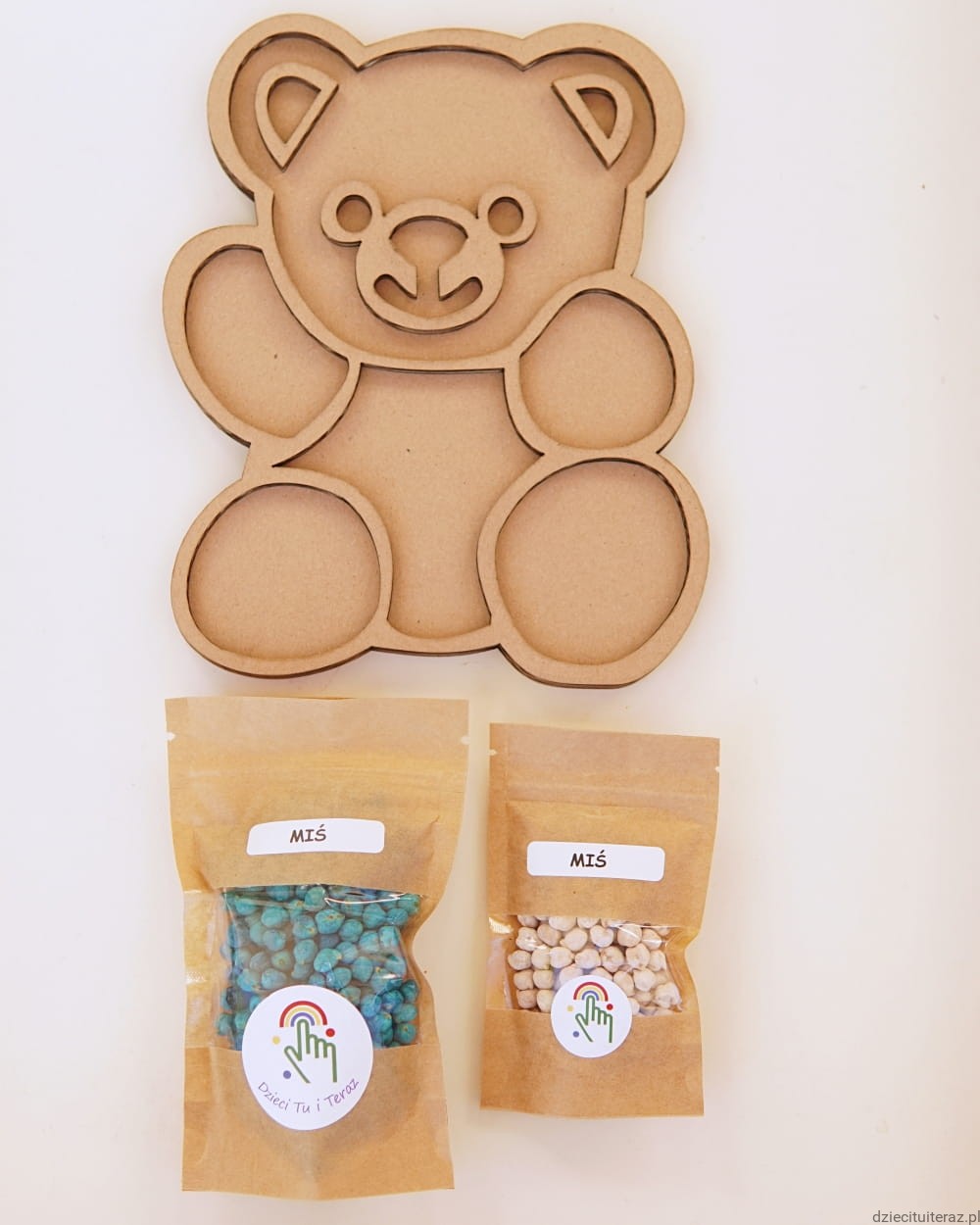 - sensokarton w kształcie misia o wymiarach 25cm x 20cm