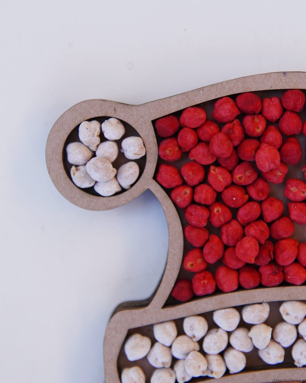Pomoc terapeutyczna jest w pełni ekologiczna, zrobiona z tektury i naturalnych ziaren.
