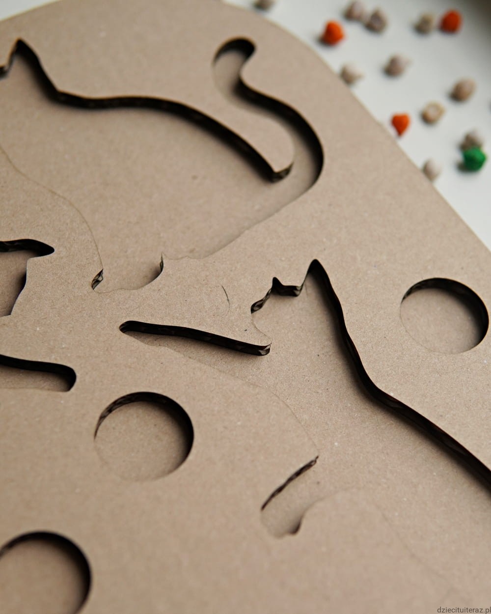 Pomoc terapeutyczna jest w pełni ekologiczna, zrobiona z tektury i naturalnych ziaren.