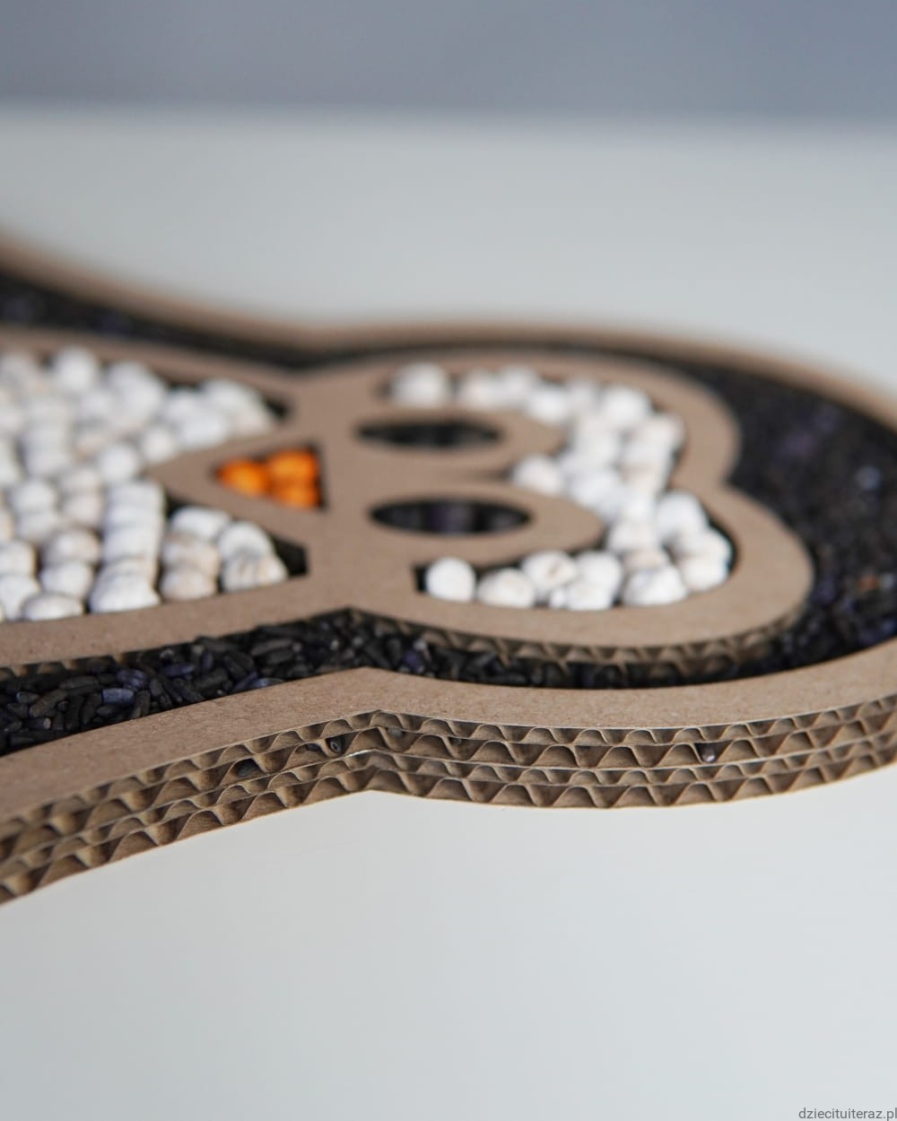 Pomoc terapeutyczna jest w pełni ekologiczna, zrobiona z tektury i naturalnych ziaren.