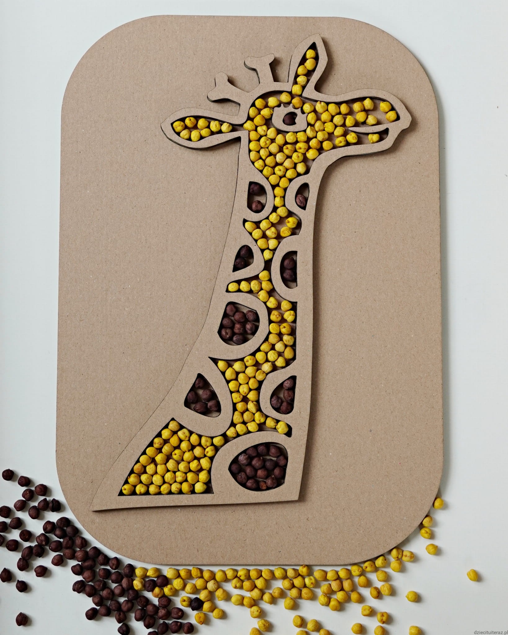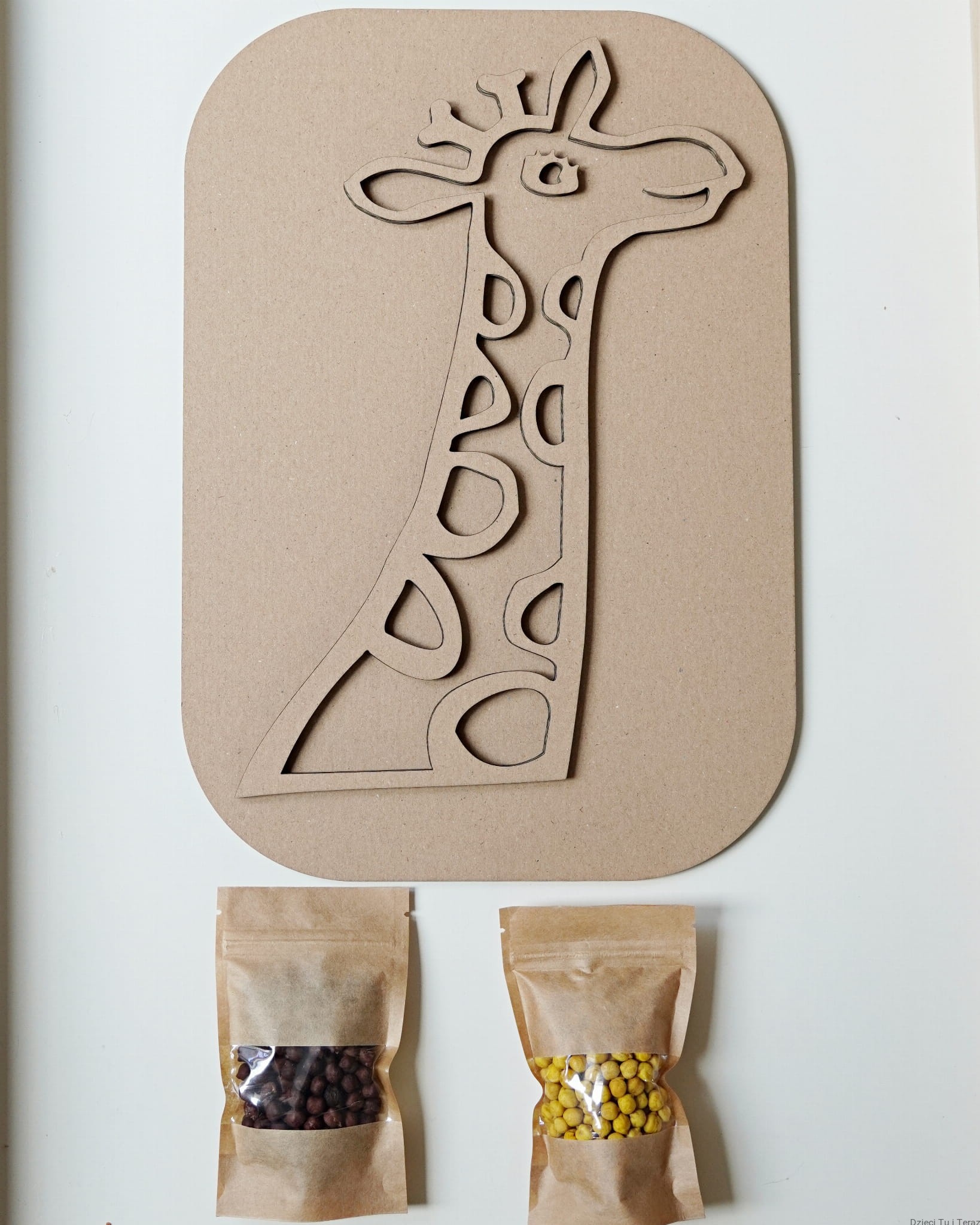 - kartonowy model z żyrafą o wymiarach 39cm x 27cm (gruba tektura dwuwarstwowa)