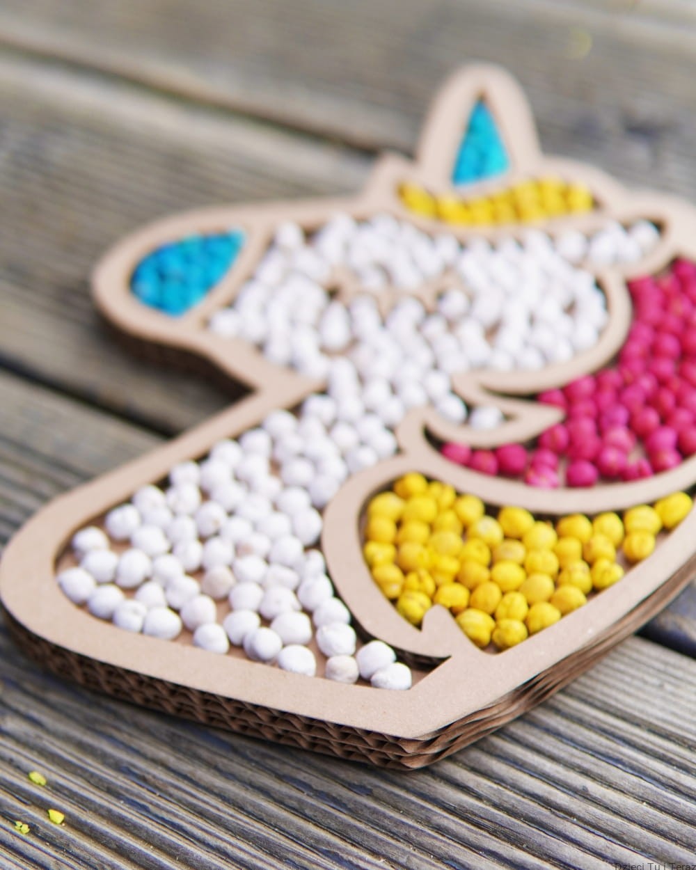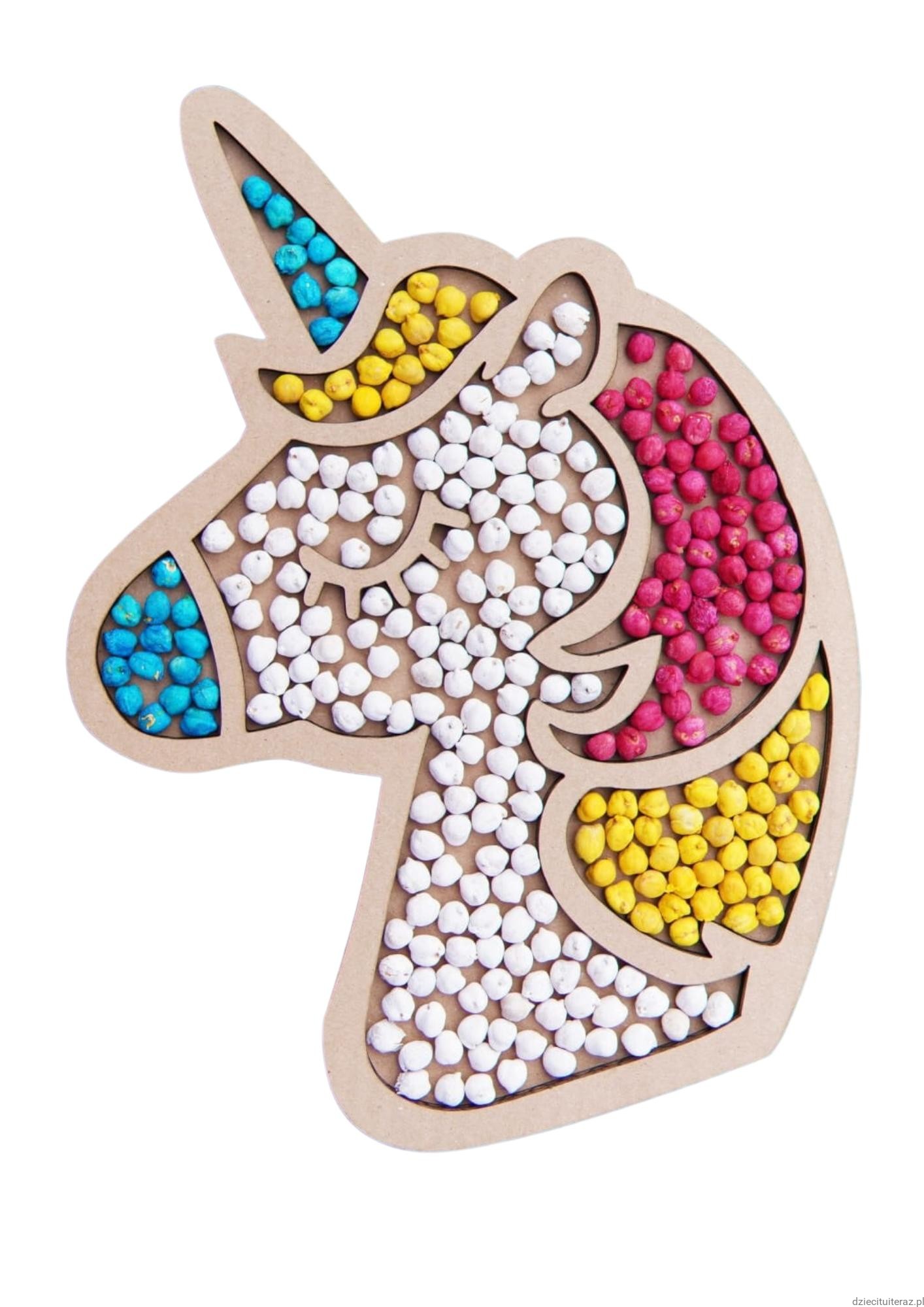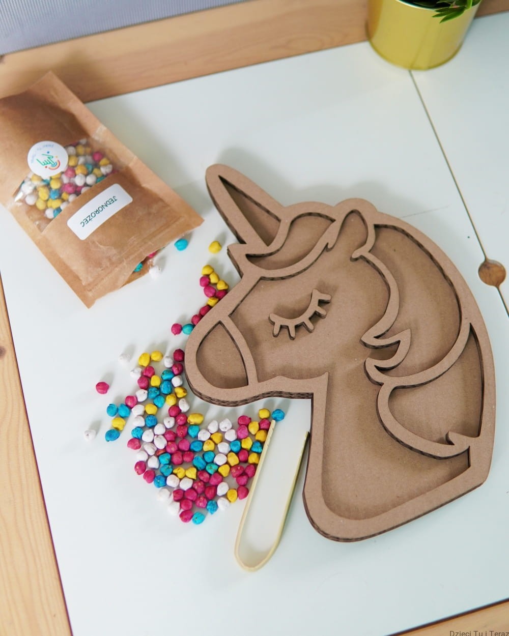 - sensokarton jednorożec wymiary ok 28cm x 15cm