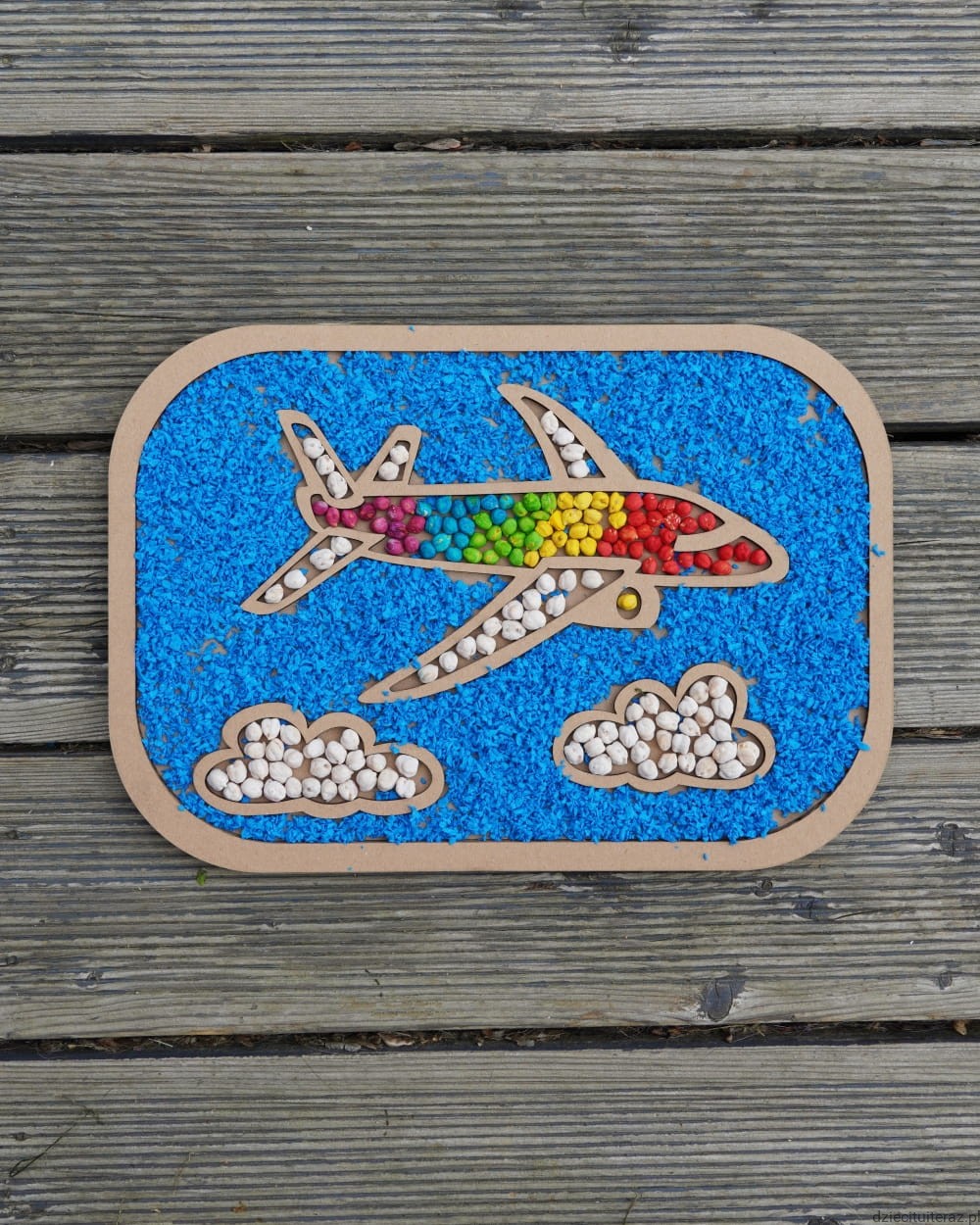 Pomoc terapeutyczna jest w pełni ekologiczna, zrobiona z tektury i naturalnych ziaren.