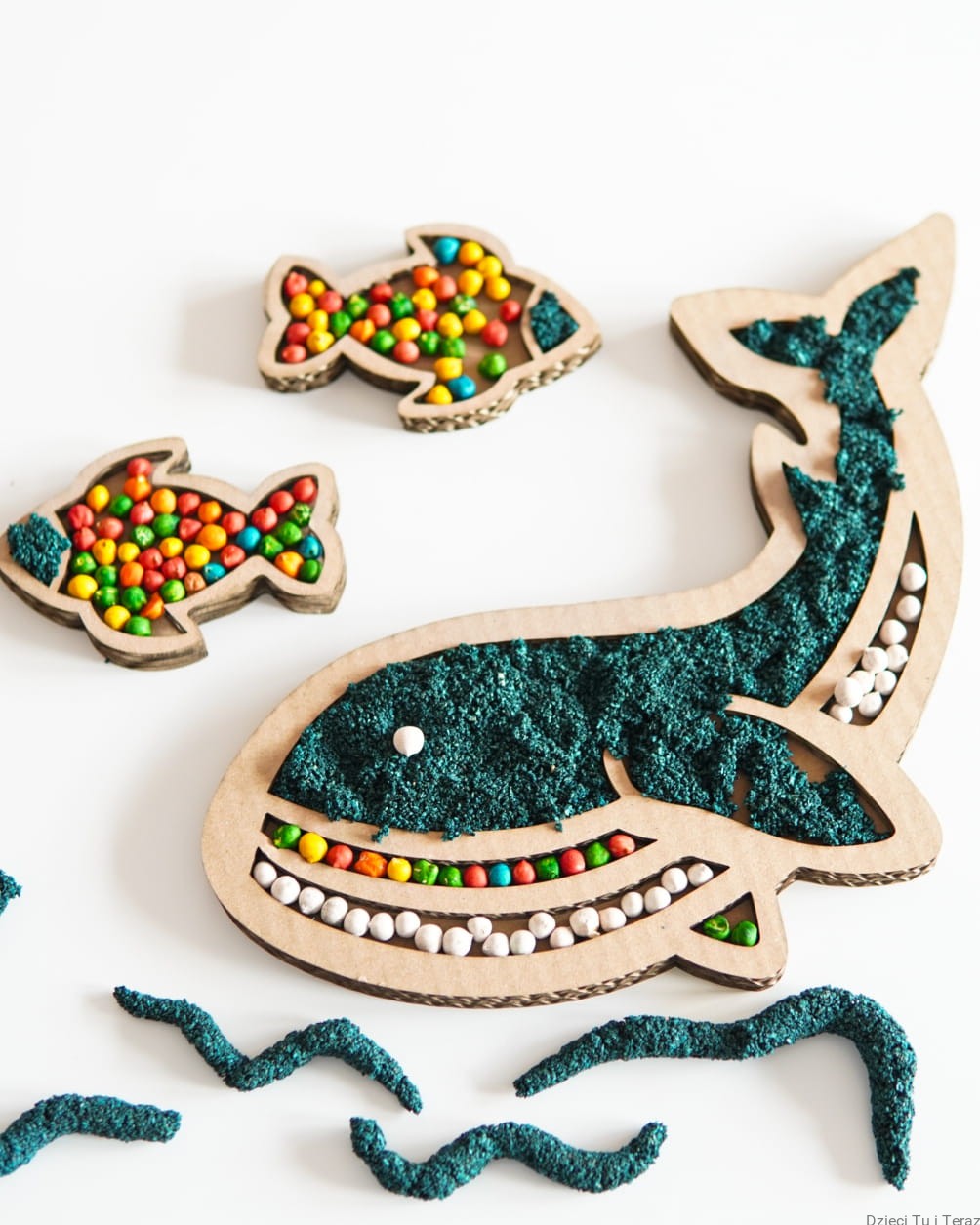 Zestaw sensoryczny do zabawy o tematyce morskiej.