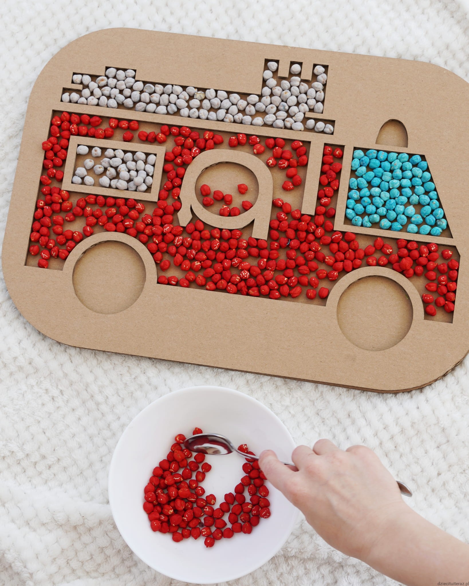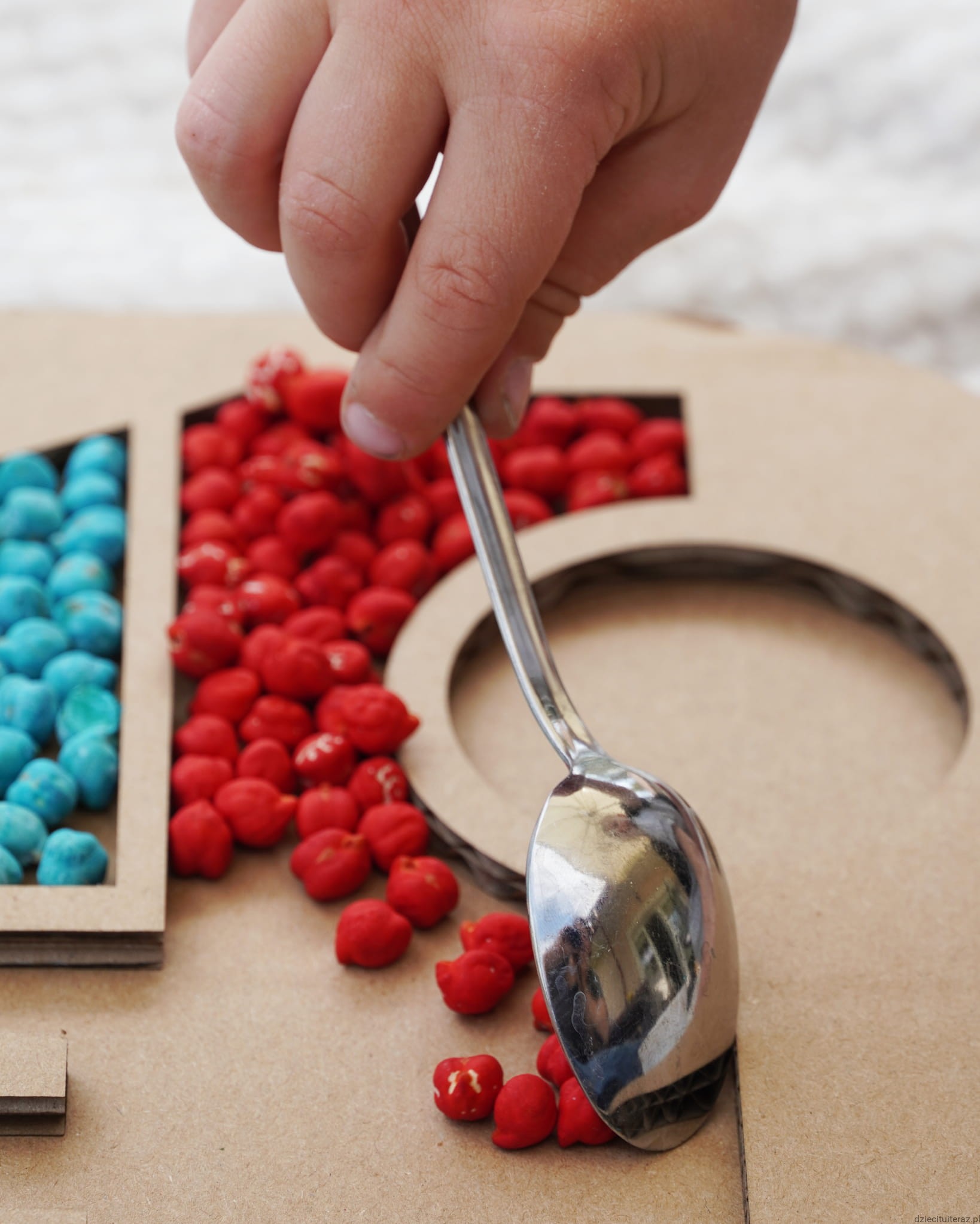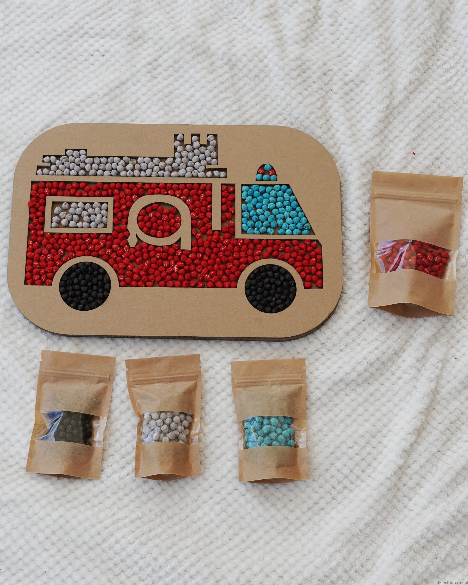 Gotowa sensoryczna pomoc dydaktyczna dla dzieci. Doskonała zabawa ułatwia rozwój mowy oraz motoryki małej. Obszary mózgu odpowiadające za precyzyjne ruchy dłoni i palców znajdują się blisko obszarów odpowiadających za artykulację mowy.