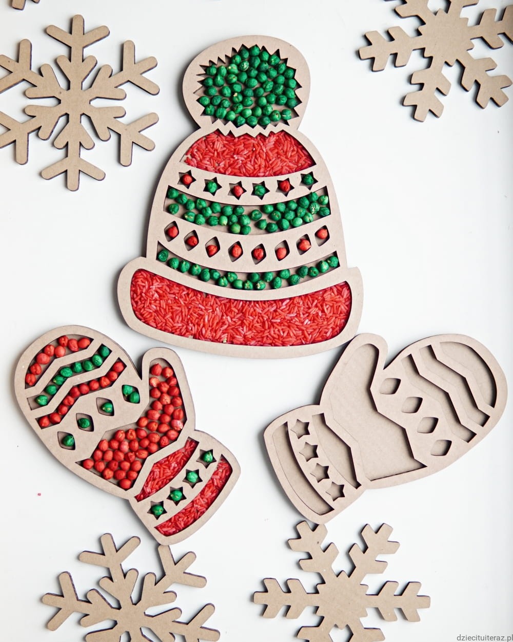 - naturalne nasiona do wypełnienia rękawiczek: wersja 1: ciecierzyca różnokolorowa 200g; wersja 2: ryż czerwony 200g oraz 100g ciecierzycy czerwonej i zielonej,