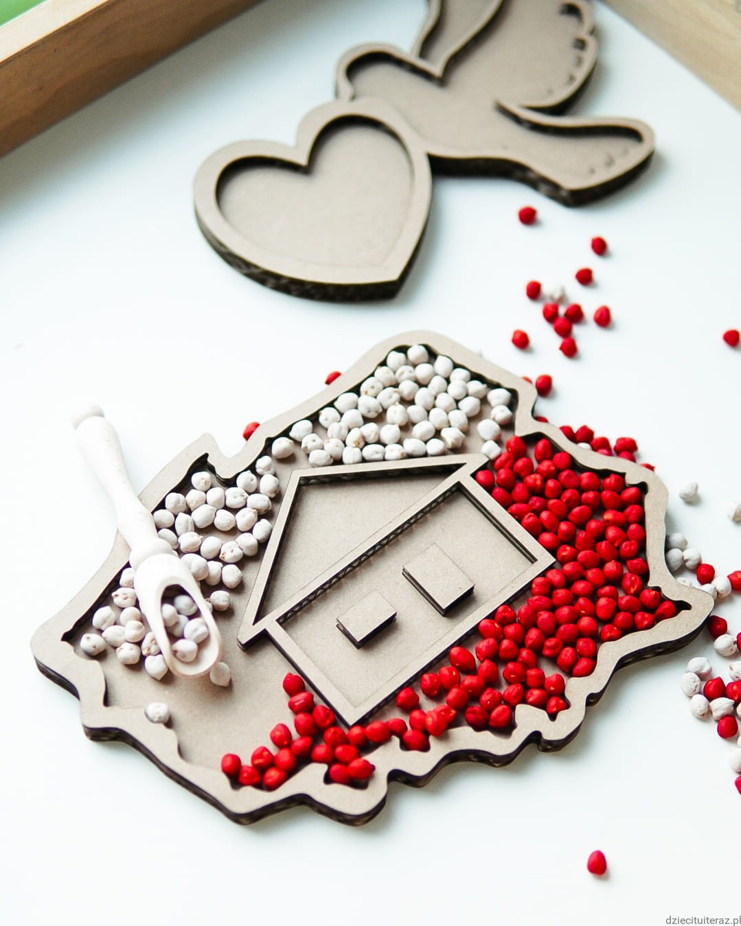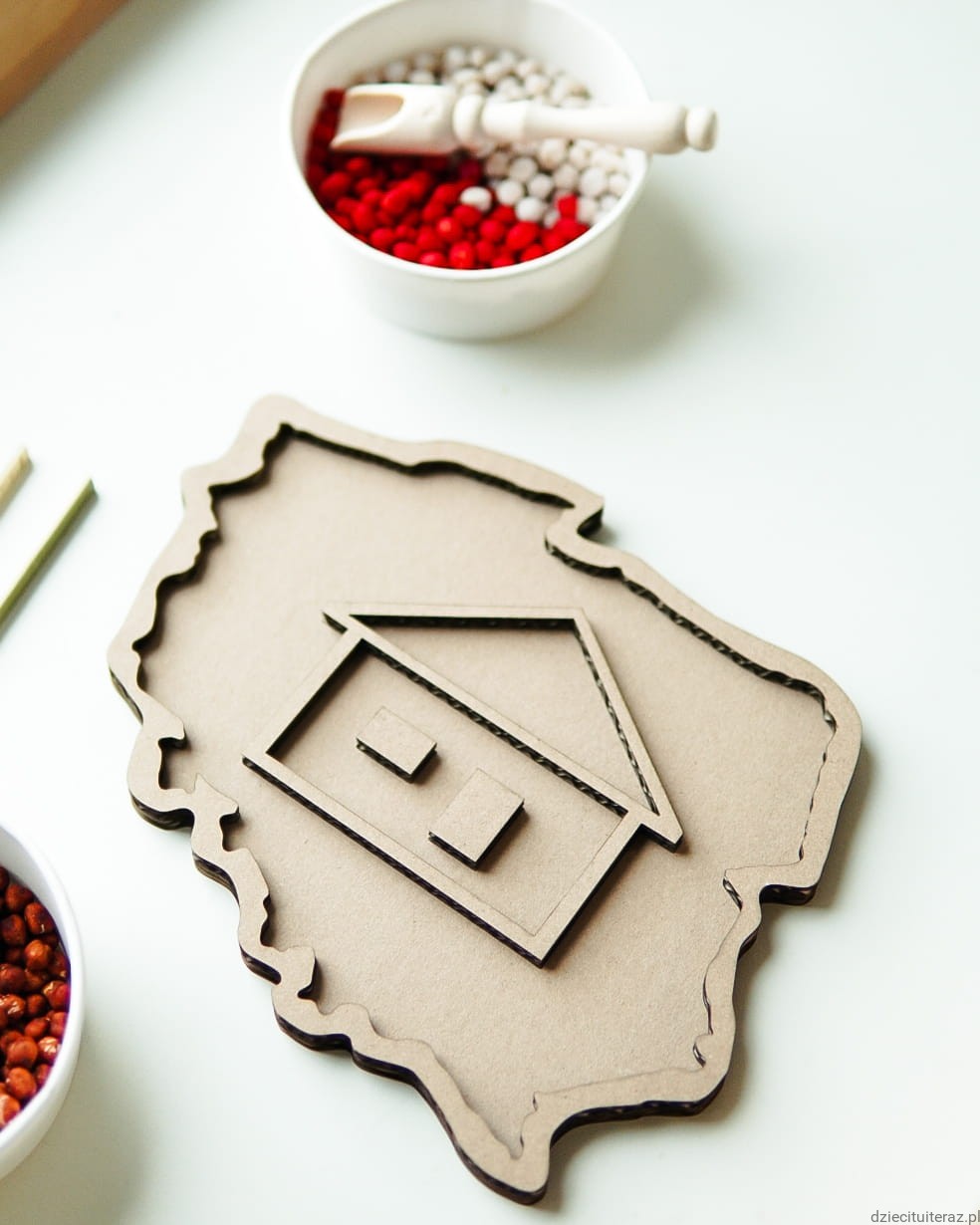 - Sensoakarton Mapa Polski z domkiem o wymiarach: 24cm x 20cm,
