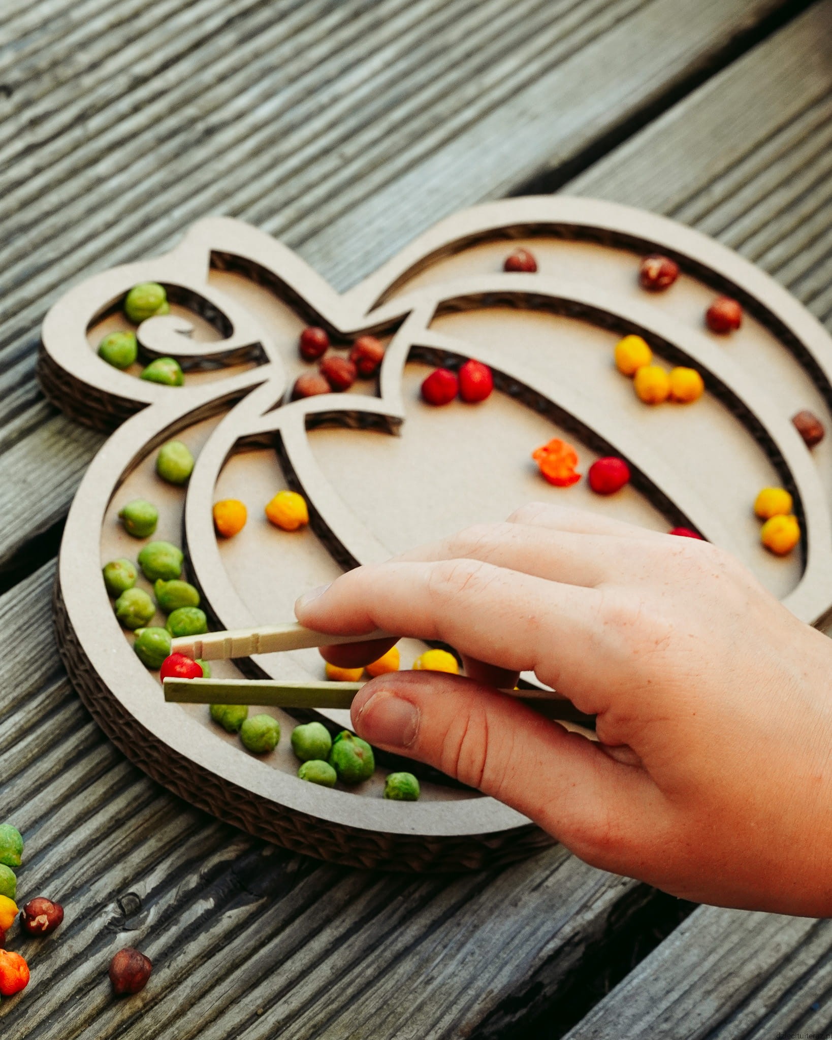 Pomoc terapeutyczna jest w pełni ekologiczna, zrobiona z tektury i naturalnych ziaren.